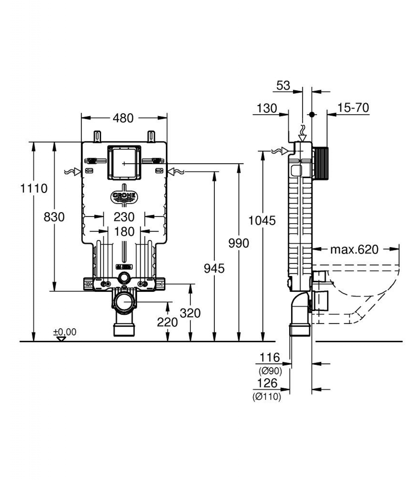 Инсталляционный комплект для унитаза GROHE Uniset для обмуровки 38643001