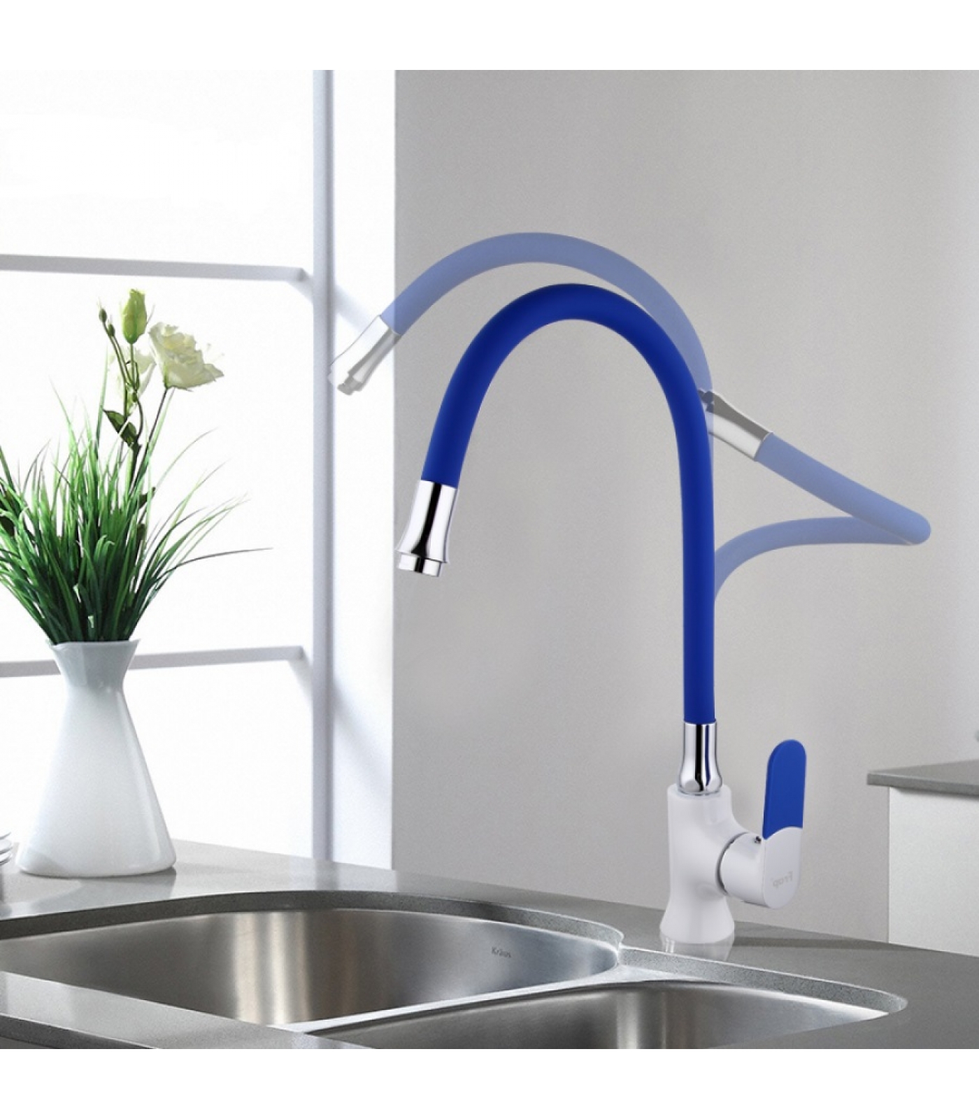 Излив для смесителя для кухни FRAP F7253, гибкий, синий устанавливается на корпус смесителя.