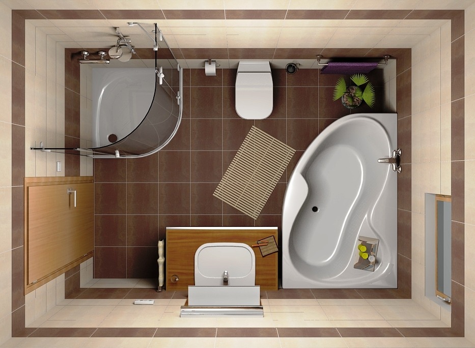 • Если площадь квартиры маленькая и ванная комната составляет пару м2, имеет смысл заменить громоздкую ванну компактной душевой, а также провести совмещение санузла.