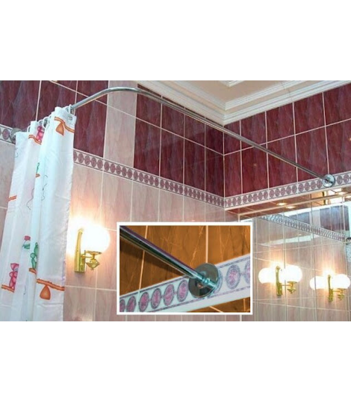 Карниз для ванной предназначен для крепления шторки в ванной комнате и препятствует разбрызгиванию воды при принятии душа. Карниз изготовлен из нержавейки.