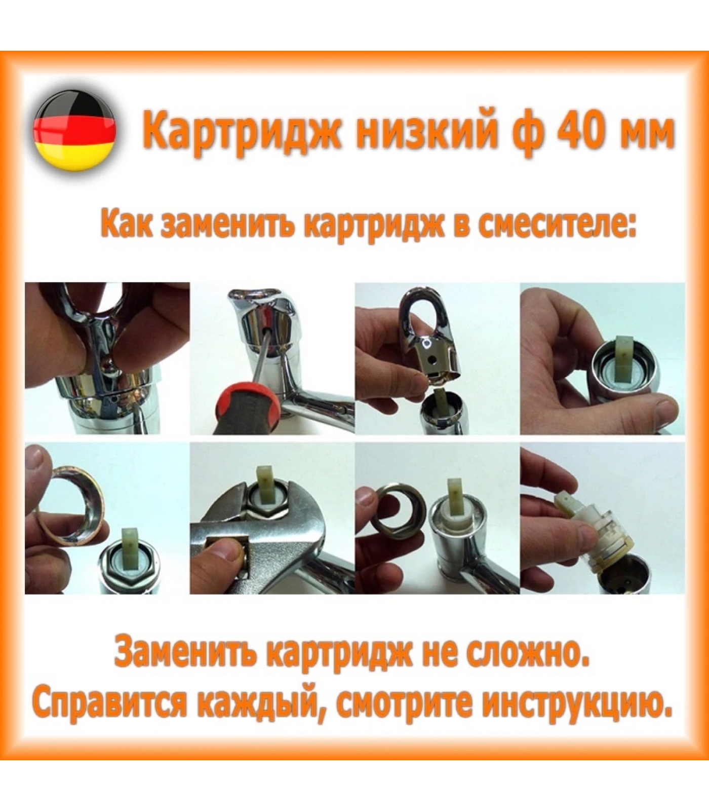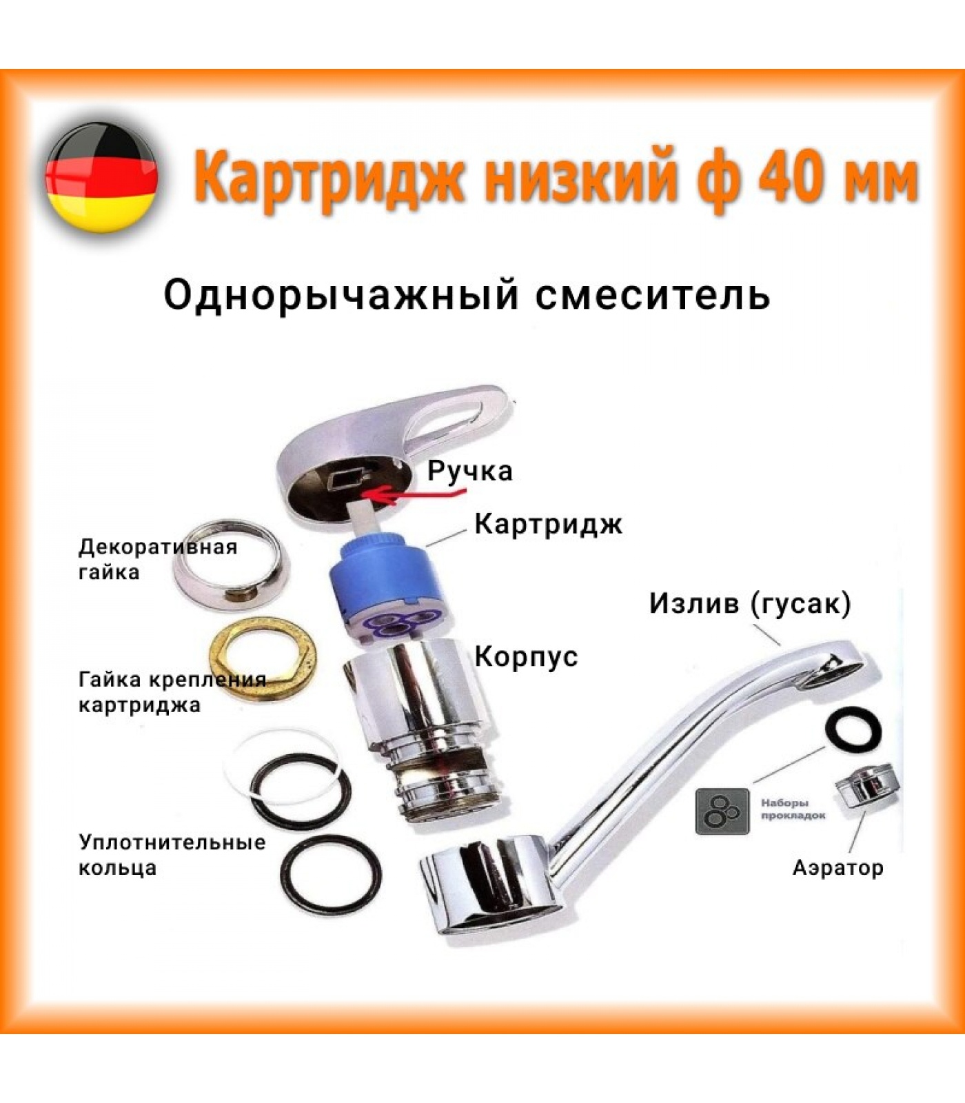 Картридж керамический низкий Elghansa Spares KL-40-500 для смесителя с низким изливом. Картридж керамический, диаметр штока 35 мм. Высота штока картриджа 40 мм.