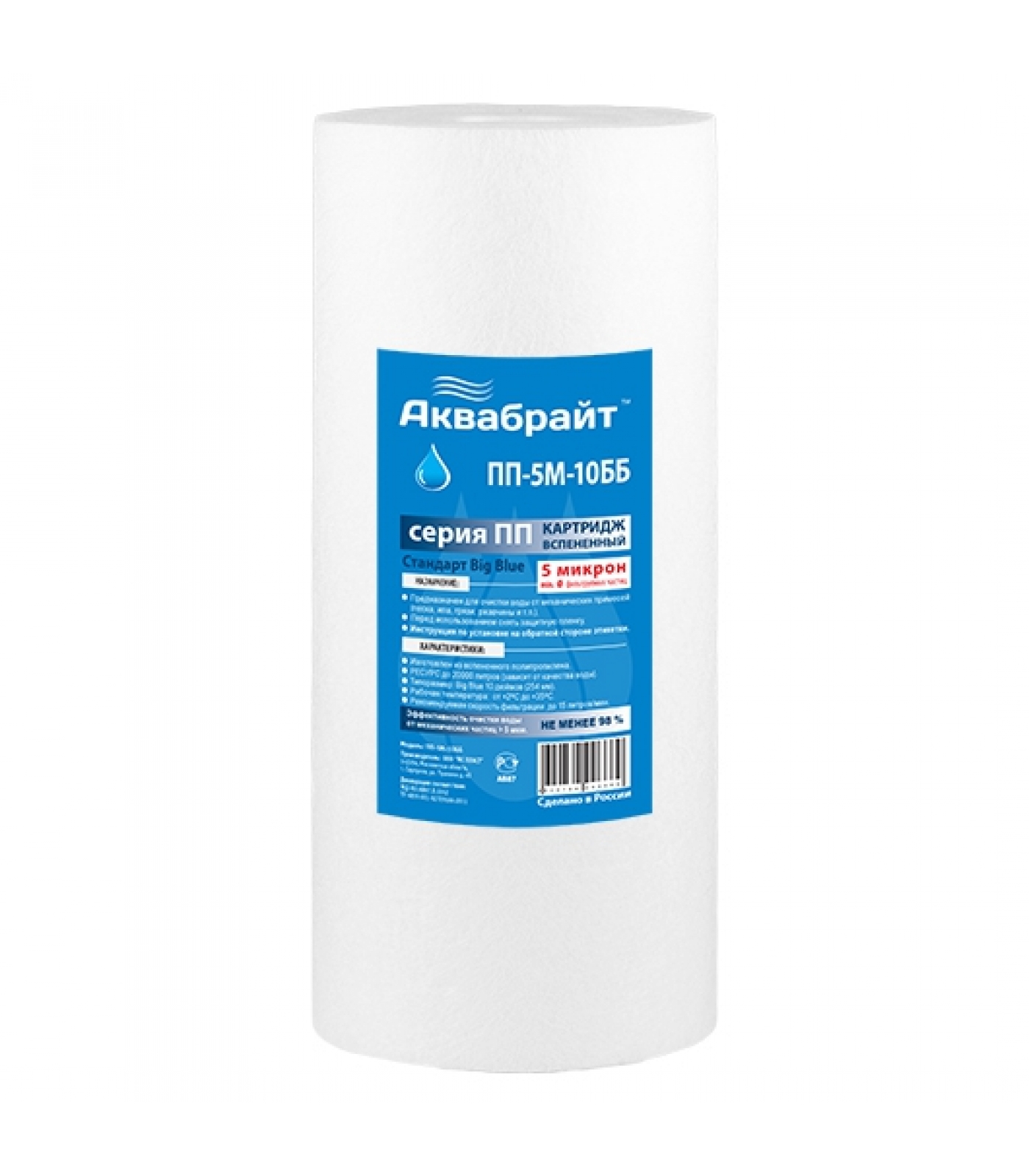 Картридж 10"ВВ на 5мкм Аквабрайт вспененный полипропилен для холодной воды