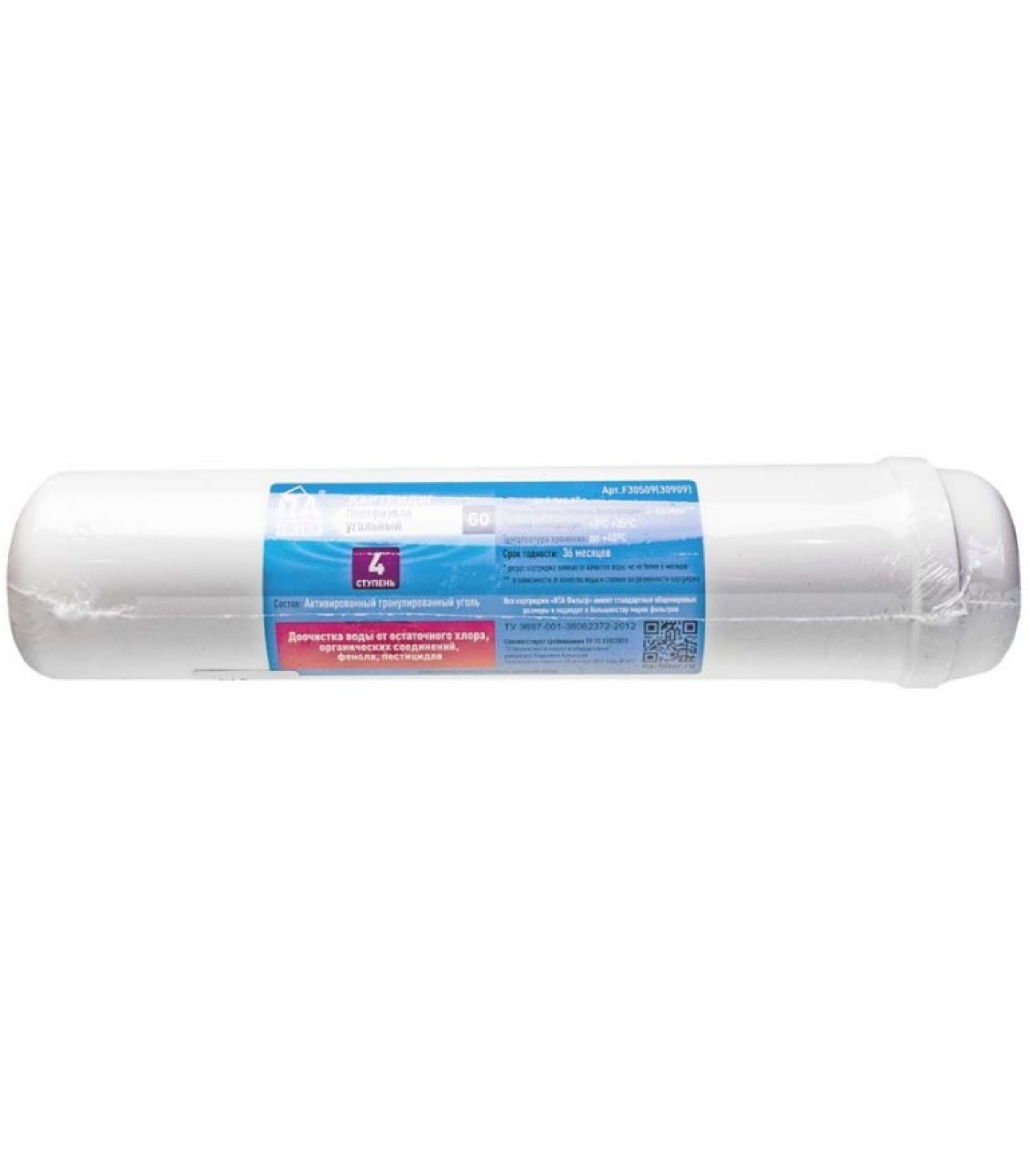 Угольный постфильтр 60 мм применяется в питьевых системах и системах на основе обратного осмоса и является последней ступенью очистки воды перед подачей на кран.