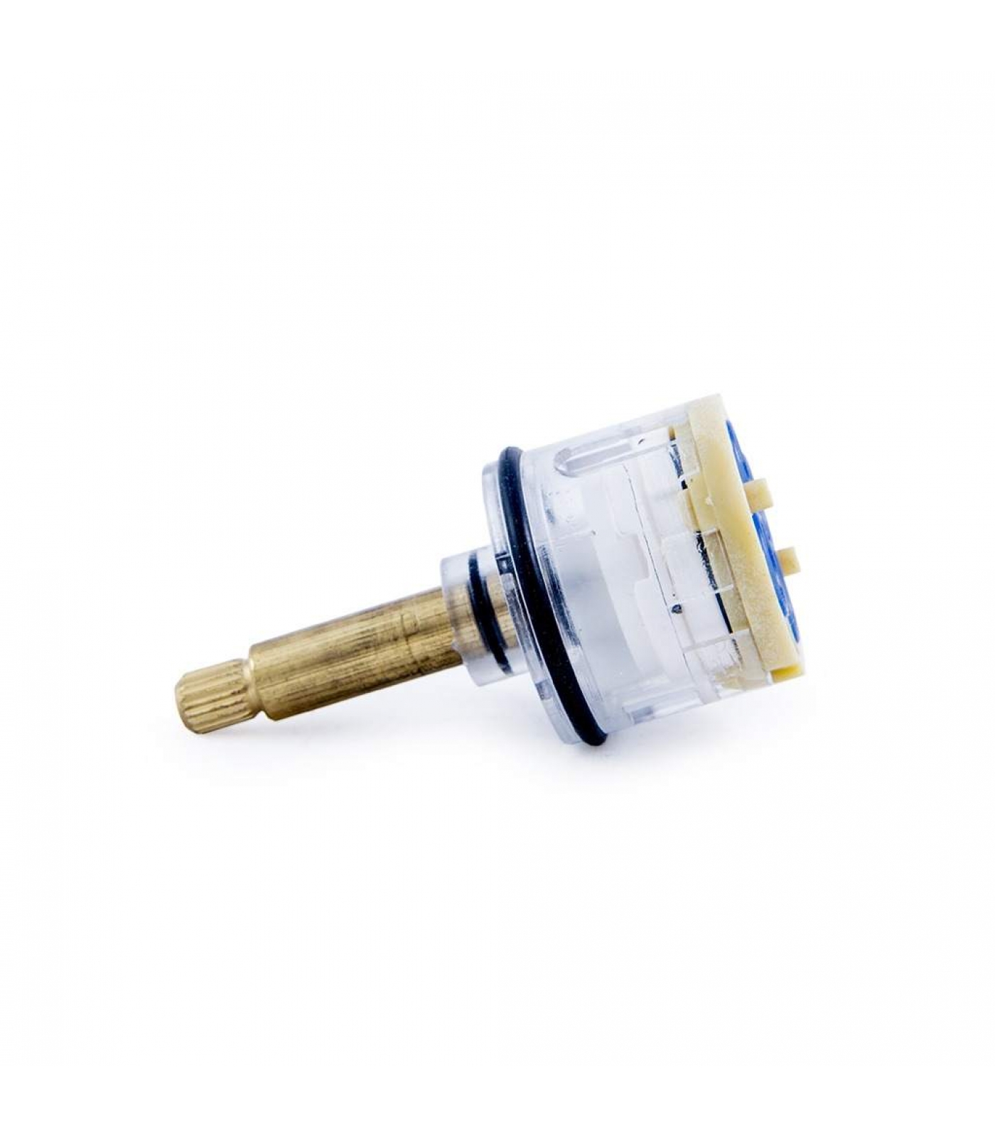 Корпус картриджа изготовлен из износостойкого пластика, устойчивого к перепадам температуры воды. Шток выполнен из латуни, рабочие диски — керамические, благодаря чему картридж надежно защищен от вредного воздействия жесткой воды. Конструкция картриджа спроектирована под плавный ход, что делает переключение максимально легким и комфортным.
