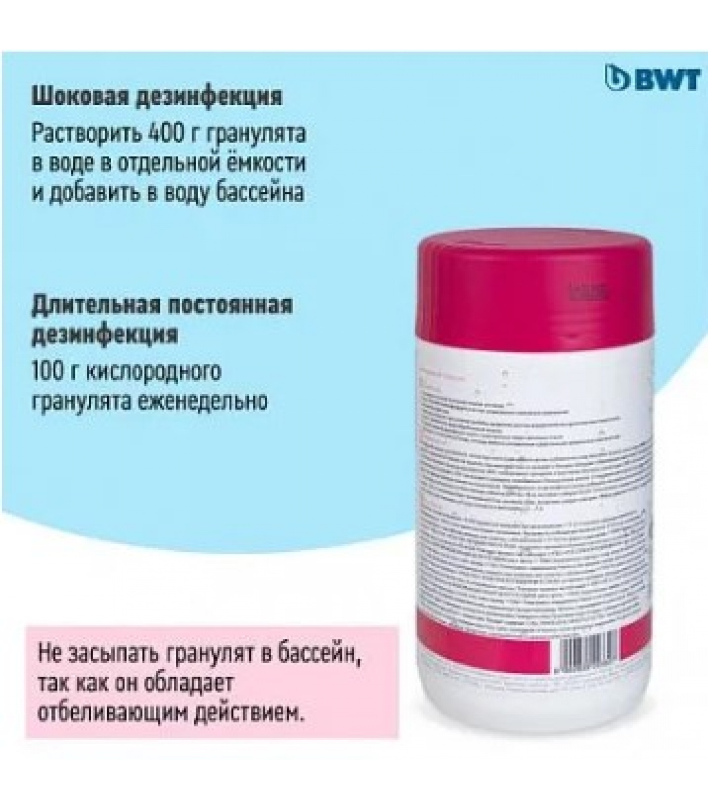 Шоковая дезинфекция: 400 г кислородного гранулята.