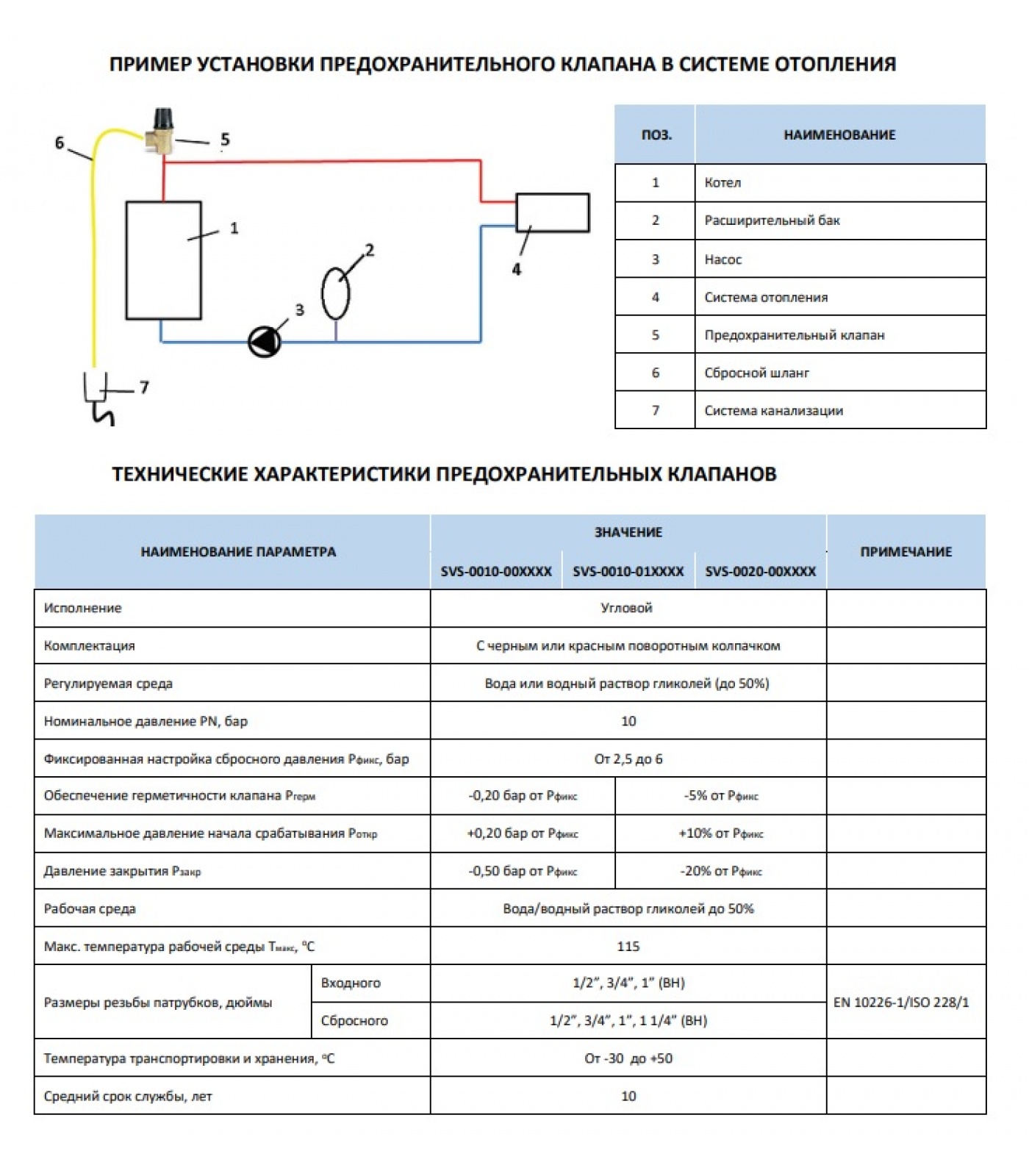 Предохранительные клапаны настроены и протестированы в заводских условиях на сброс сверхдопустимого давления в трубопроводной сети или оборудовании системы.