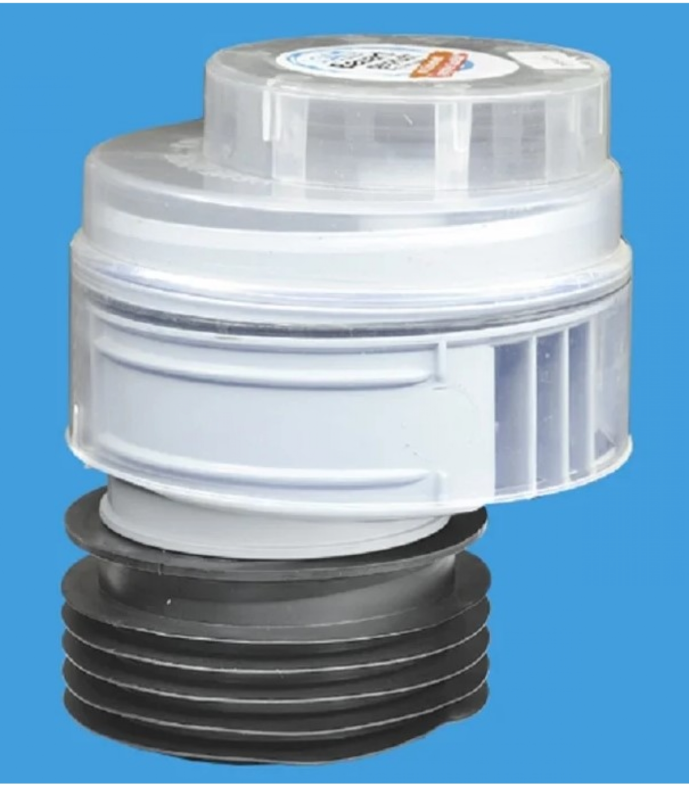 Вентиляционный канализационный клапан McAlpine MRAA1-CLEAR эксцентрический с прозрачной крышкой, выход манжета Дн=110мм, предназначен для соединения с пластиковыми или металлическими раструбными трубами с DN110.