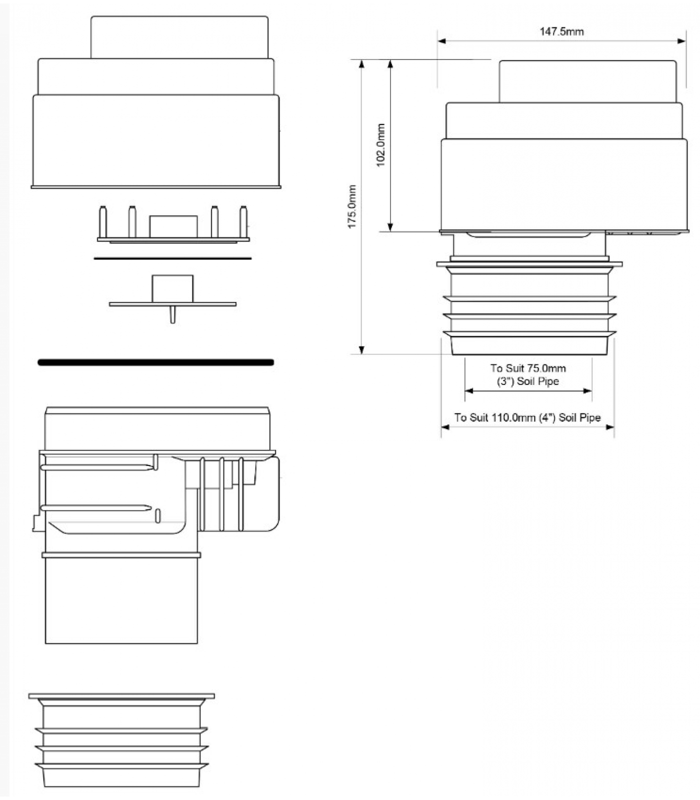 Cоединение с трубой - DN110 (выход манжета)