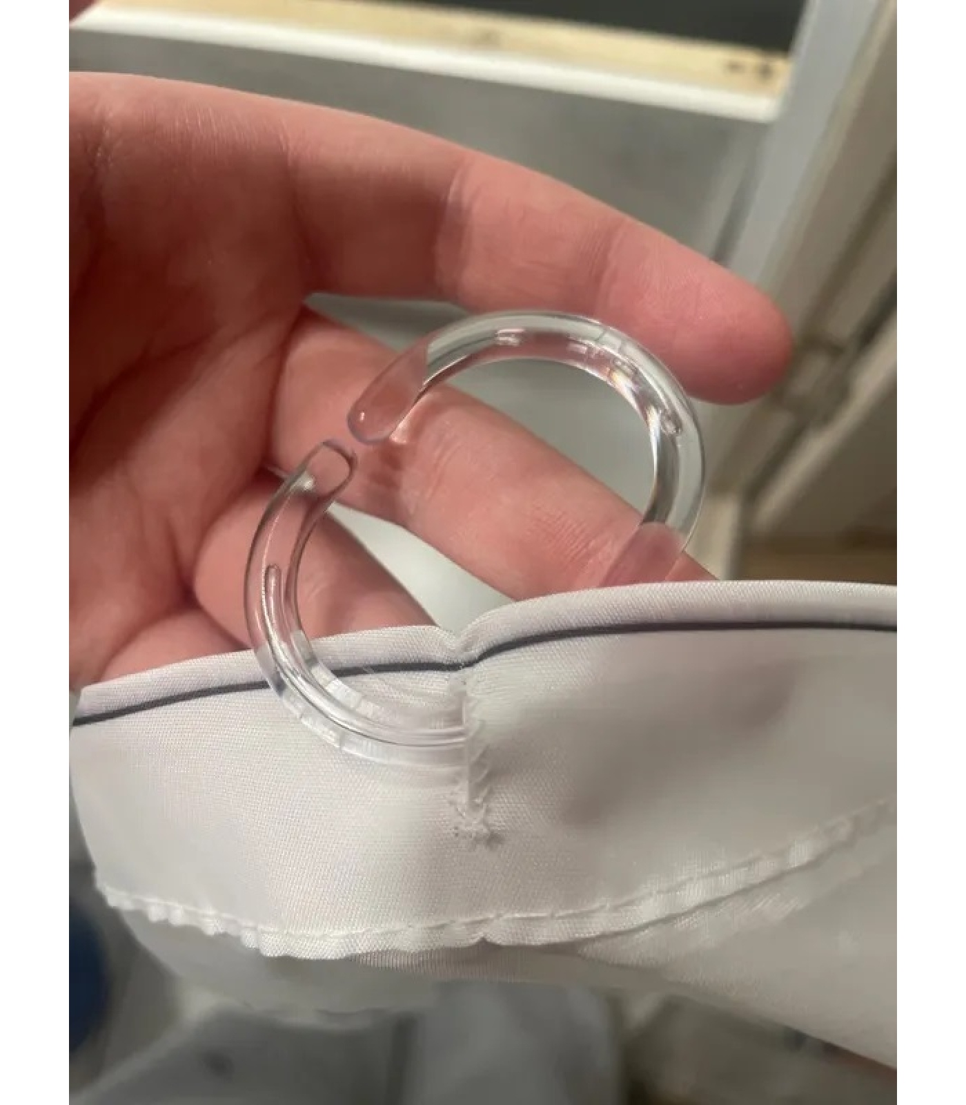 Кольца для штор в ванную, 12 шт. Кольца для штор в ванную выполнены из качественного, практичного пластика. Набор пластиковых колец -специальные комплектующие, которые позволят заменить кольца, пришедшие в негодность. Крючки подходят к любому типу штор для ванной. Пластиковые кольца для шторы в ванную легко скользят по карнизу, позволяя без усилий открывать и закрывать ее. Пластик устойчив к высокой влажности, не деформируются при снижении температуры в помещении. Прозрачные кольца можно купить для штор любого цвета. Снять шторку с колец тоже довольно просто, но при этом изгиб колец не позволяет шторке выскакивать из кольца при задвигании и раздвигании шторки.