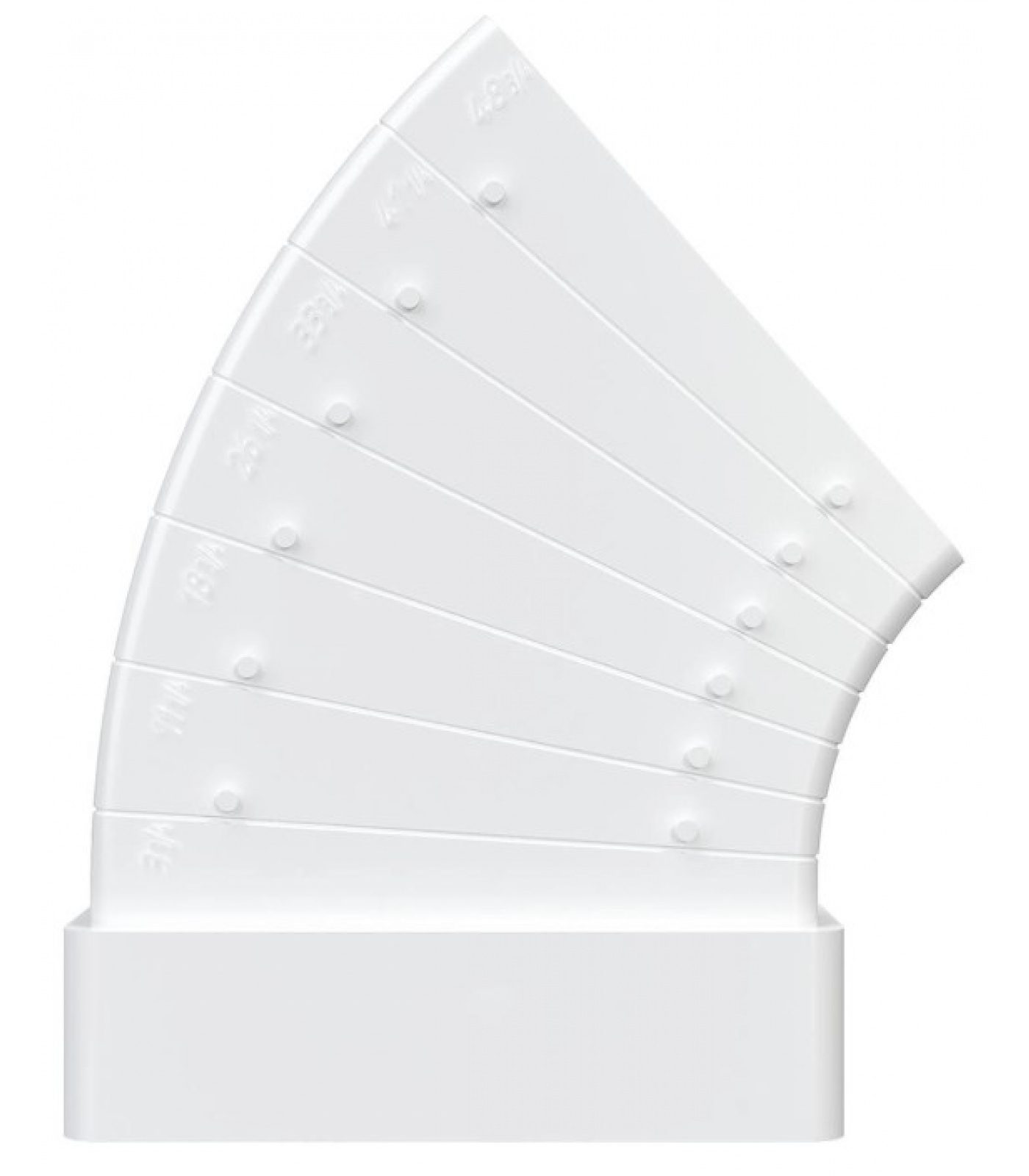 Колена разноугловые горизонтальные плоские КРП применяются для соединения воздуховодов соответствующего сечения под углом от 3° до 48°. В зависимости от выбранного угла одна сторона соединителя подрезается.