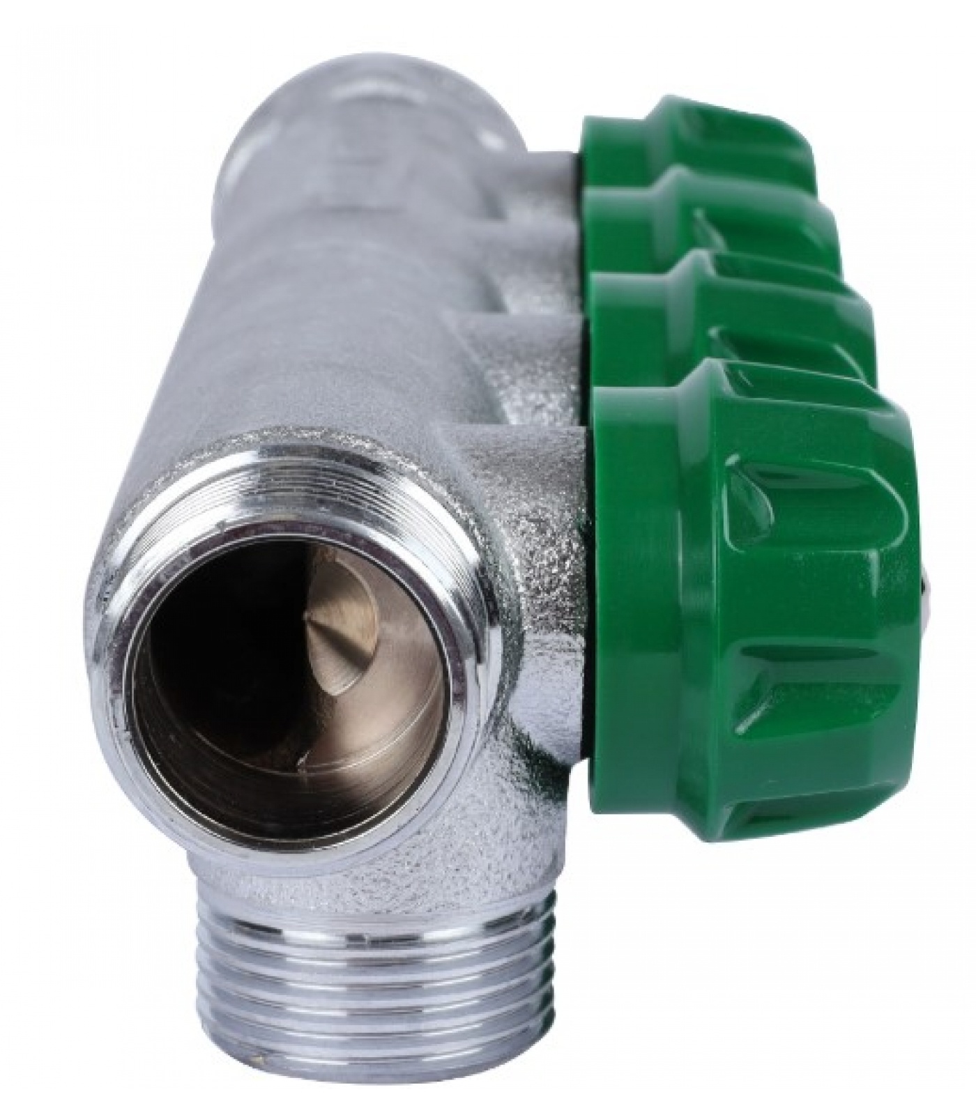 Коллекторы распределительные с регулировочно-отсечными клапанами соединяются по принципу модульности, а на выходах имеют возможность отключения (перекрытия) каждого отдельного контура.