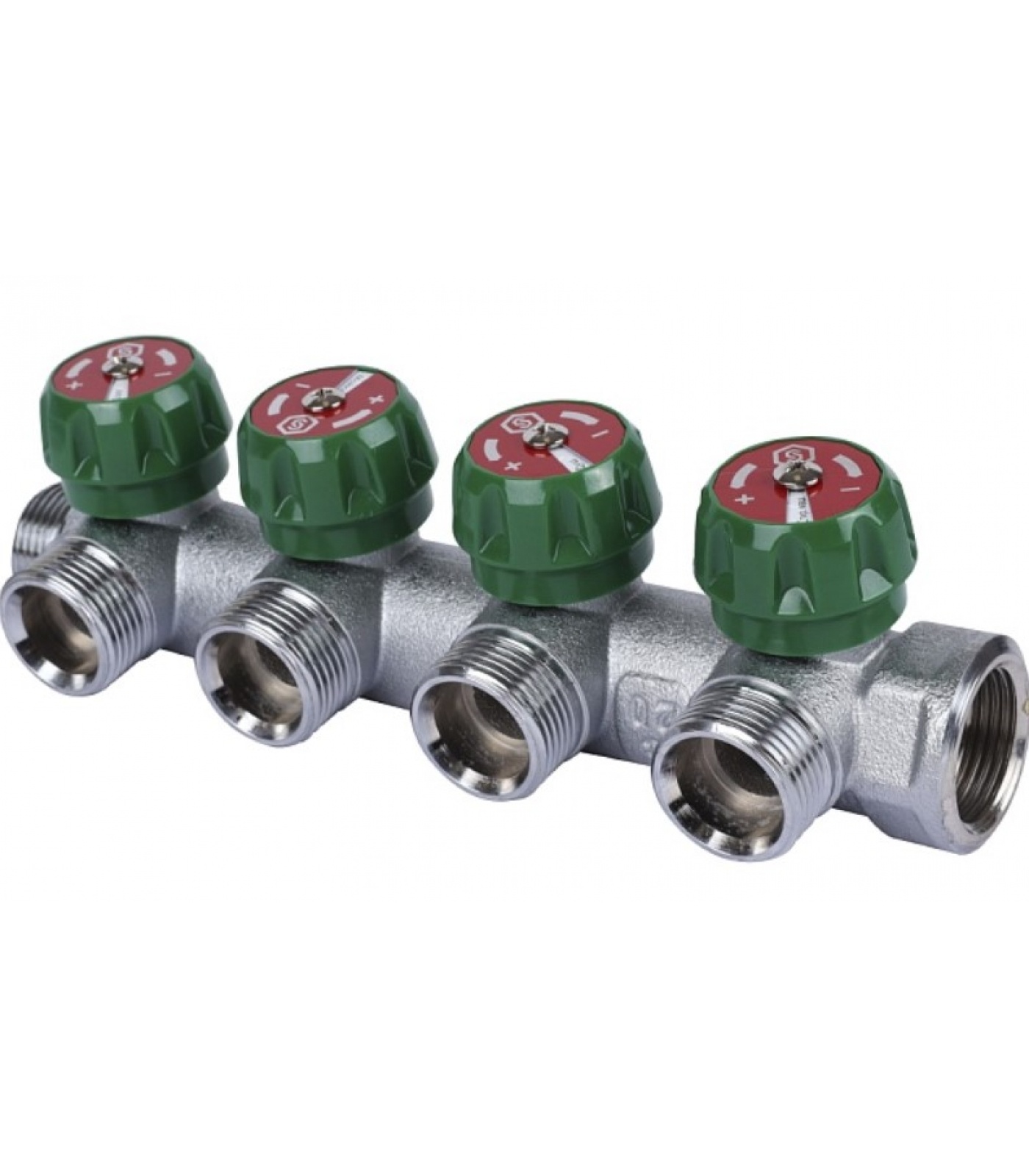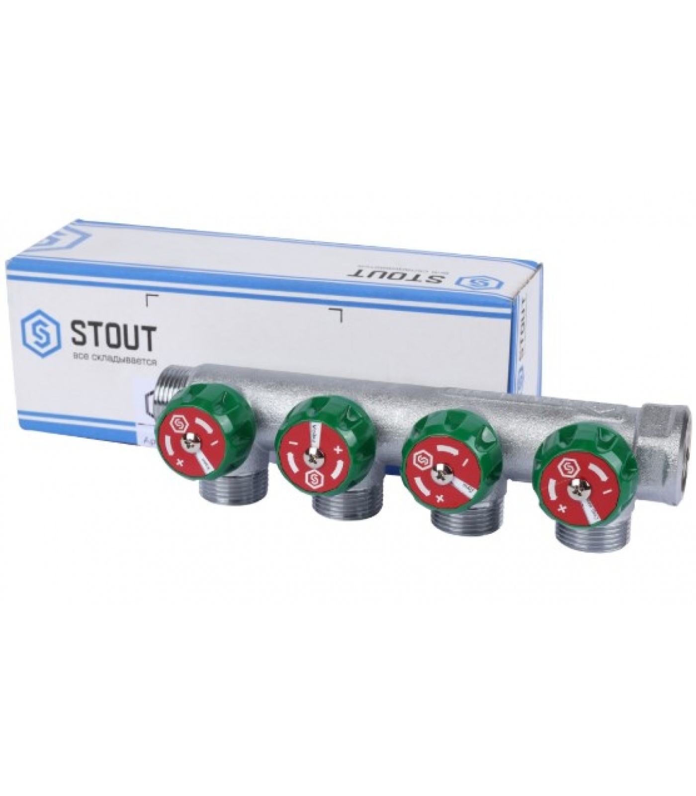 Коллектор распределительный 3/4" х 3/4"EK с 4 отводами Stout SMB-6850 регулировочно-отсечные клапаны