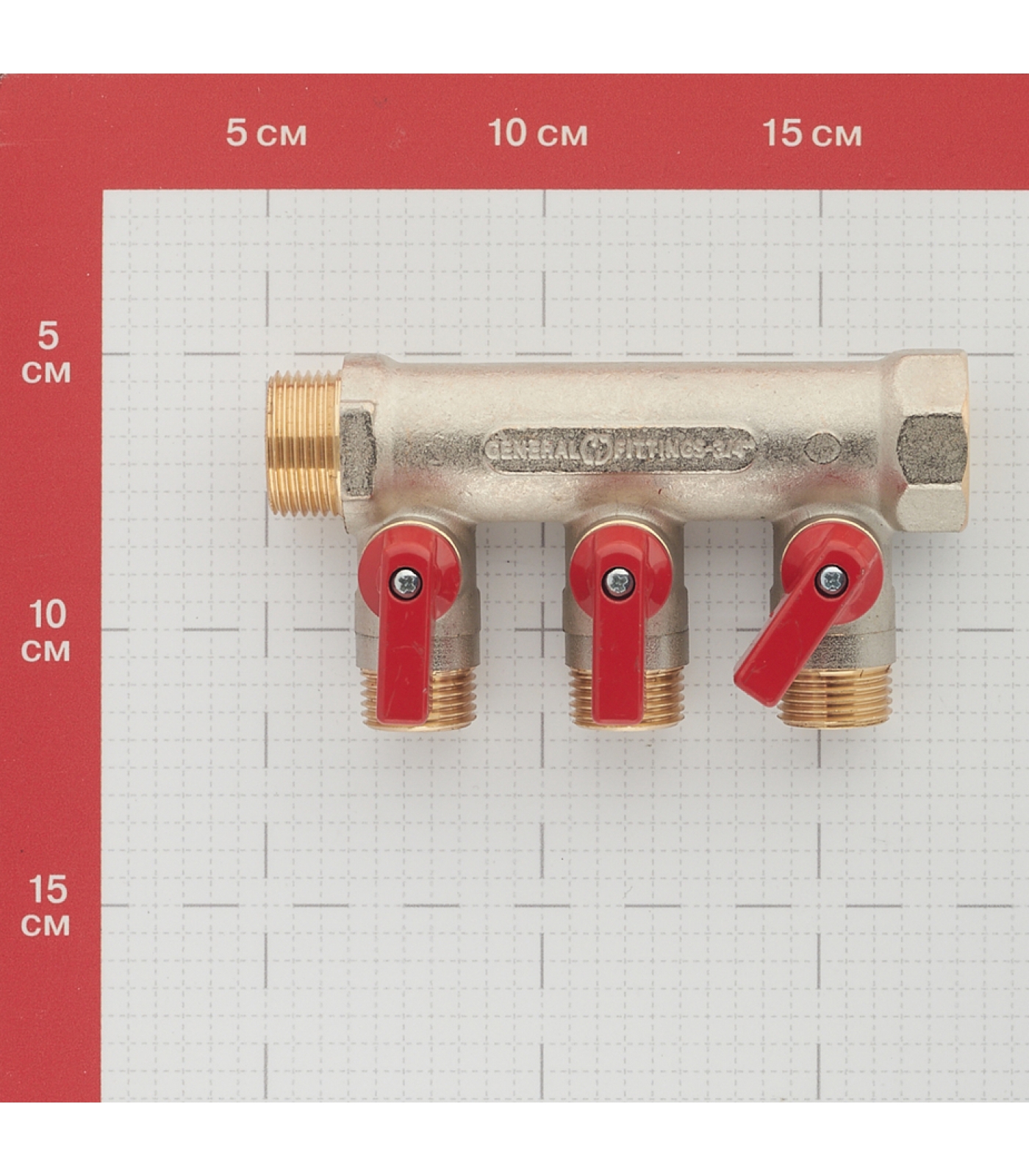 Коллектор распределительный Stout SMB-6200 3/4"х1/2" с 3 отводами, шаровые краны красные ручки