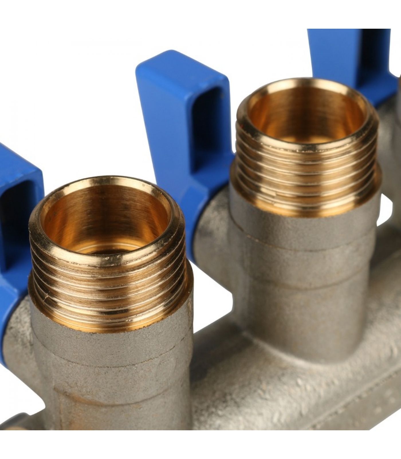 Распределительные коллекторы с регулировочными клапанами соединяются по принципу модульности, а на выходах укомплектованы встроенными шаровыми кранами и имеют возможность отключения (перекрытия) каждого отдельного контура.