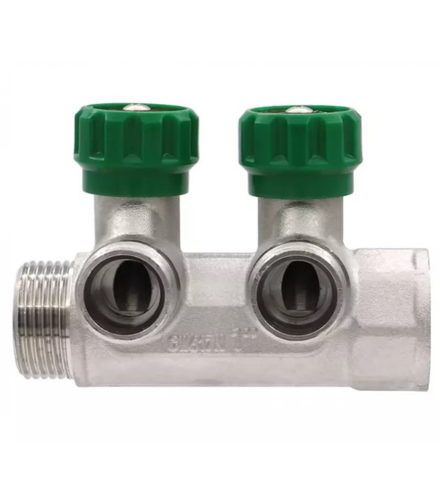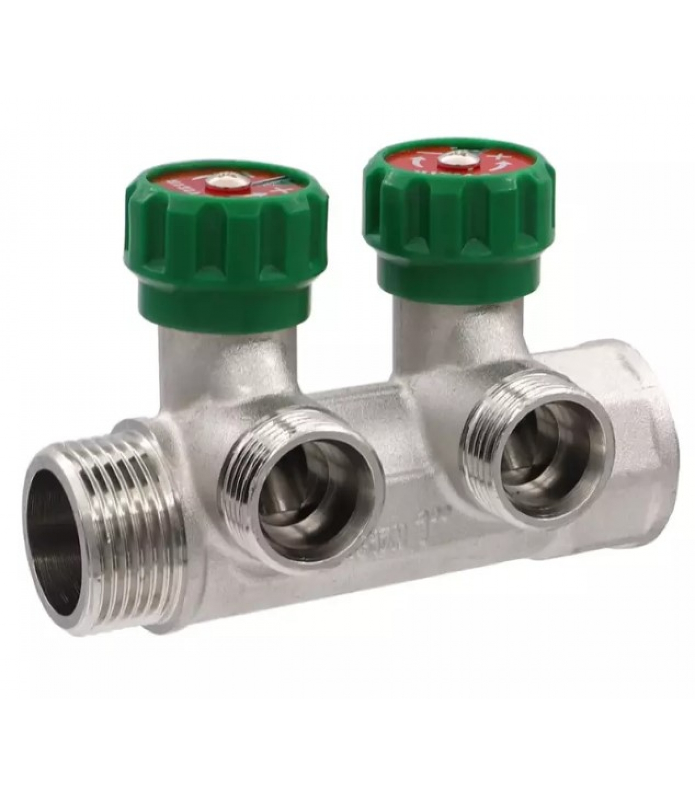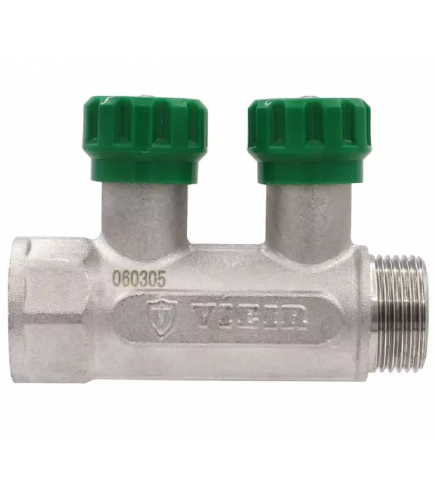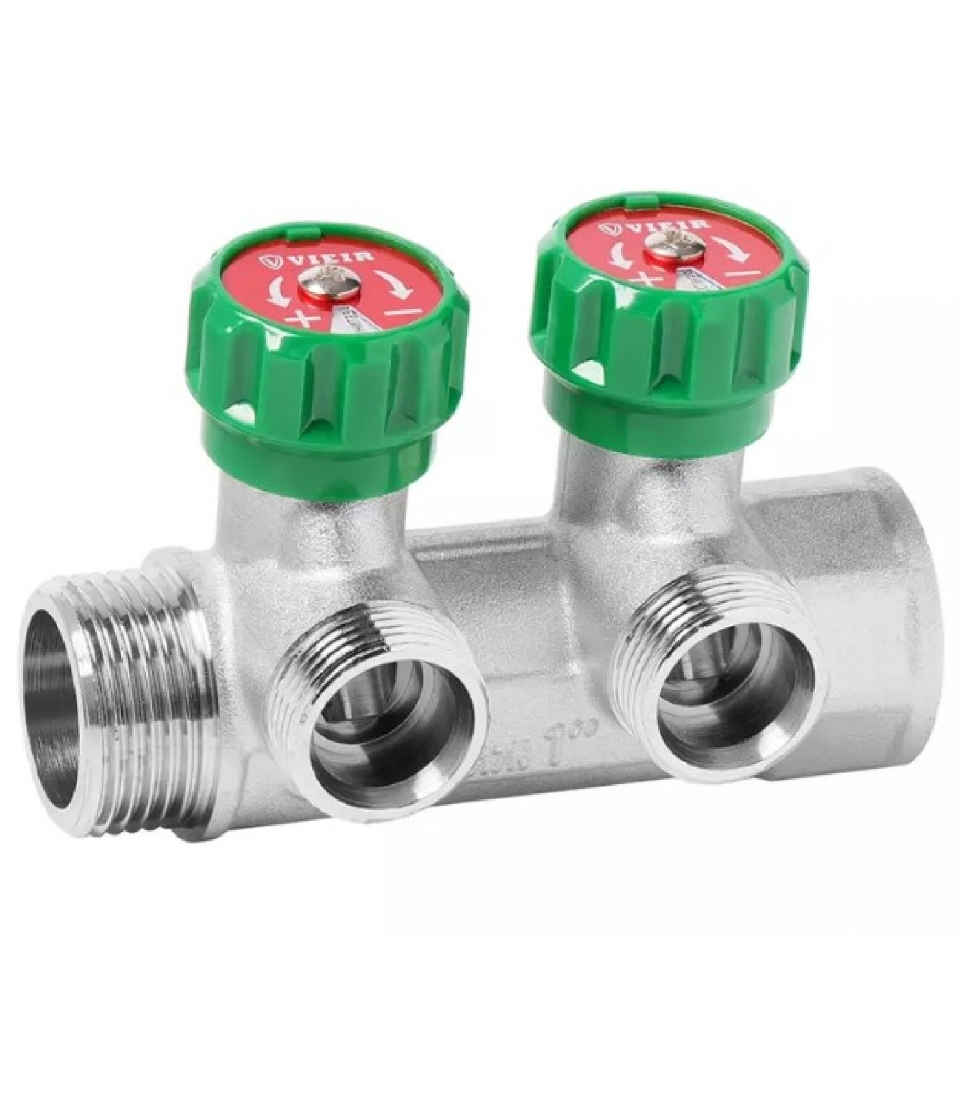 Коллектор регулирующий Vieir 1"x3/4"EK, с 2 отводами под евроконус, вентили