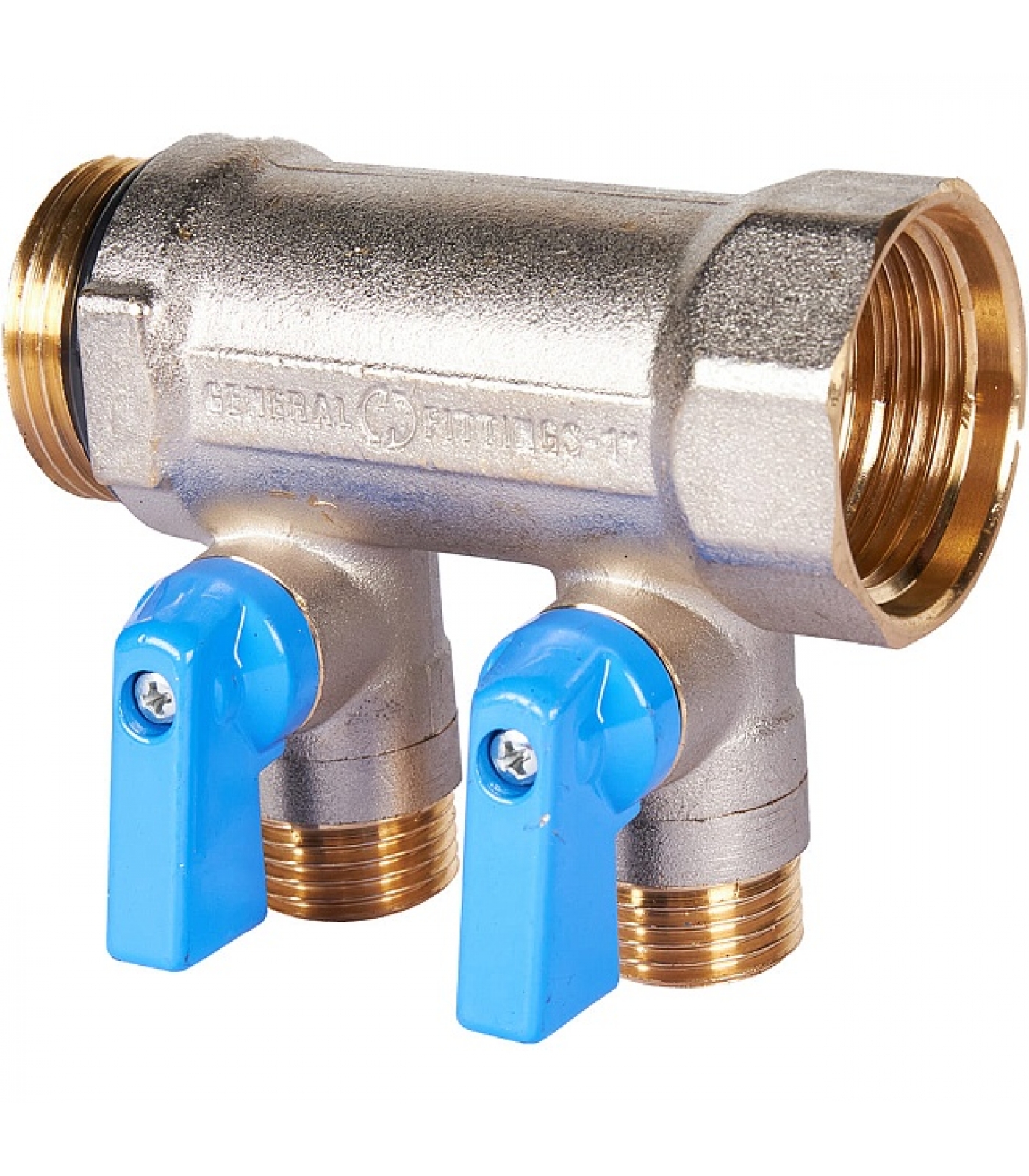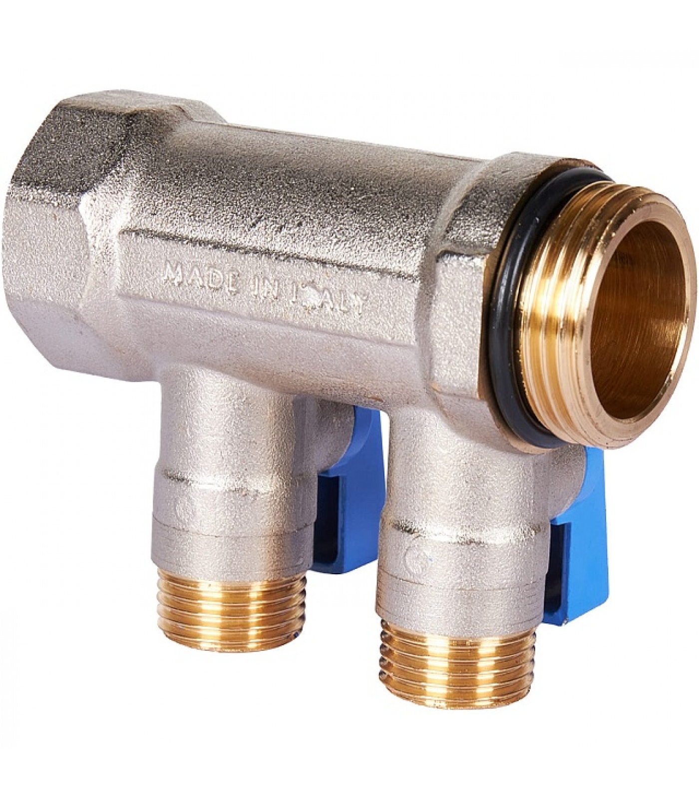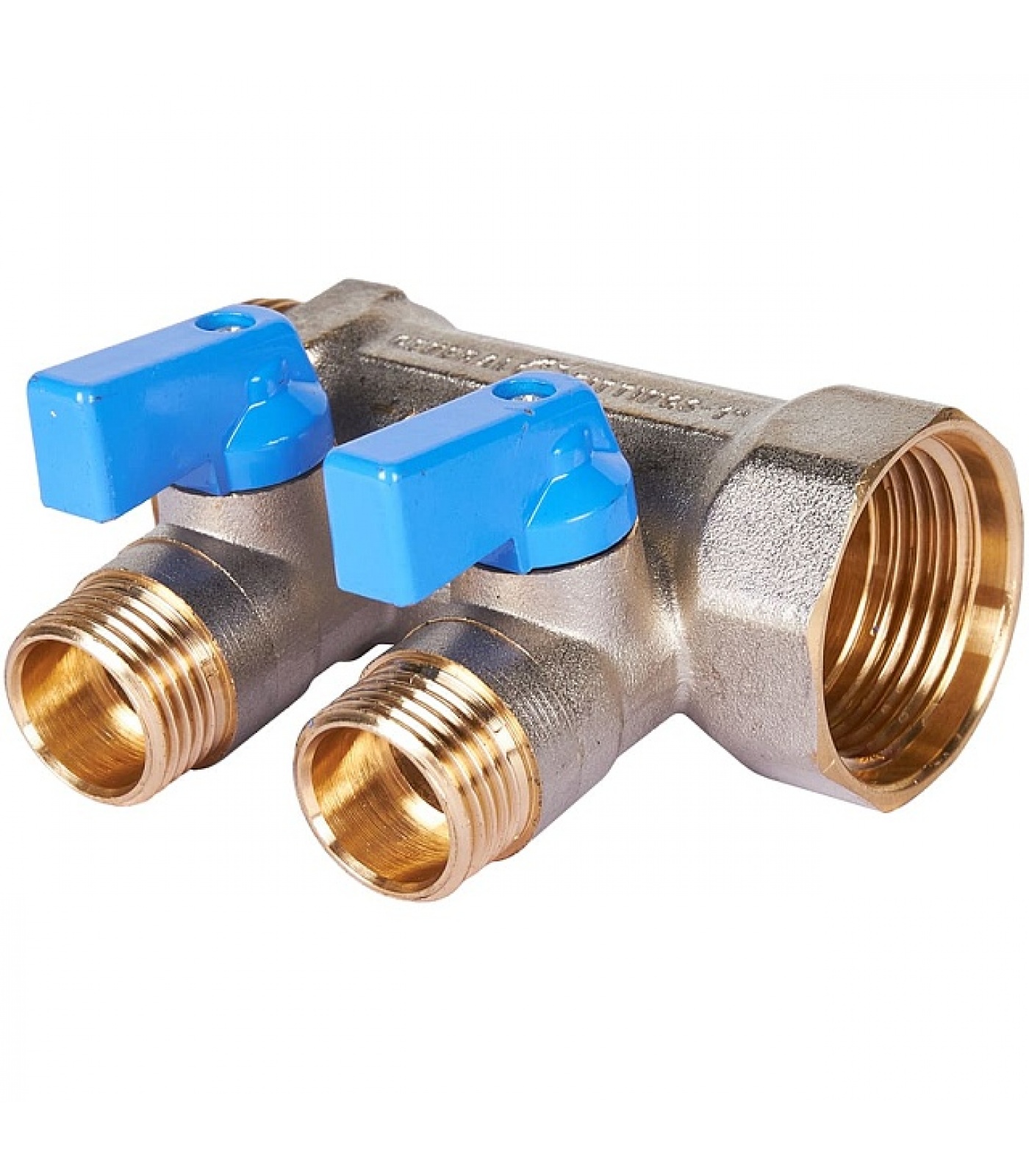 Коллектор с шаровыми кранами STOUT 1 , 2 отвода 1/2 (синие ручки)