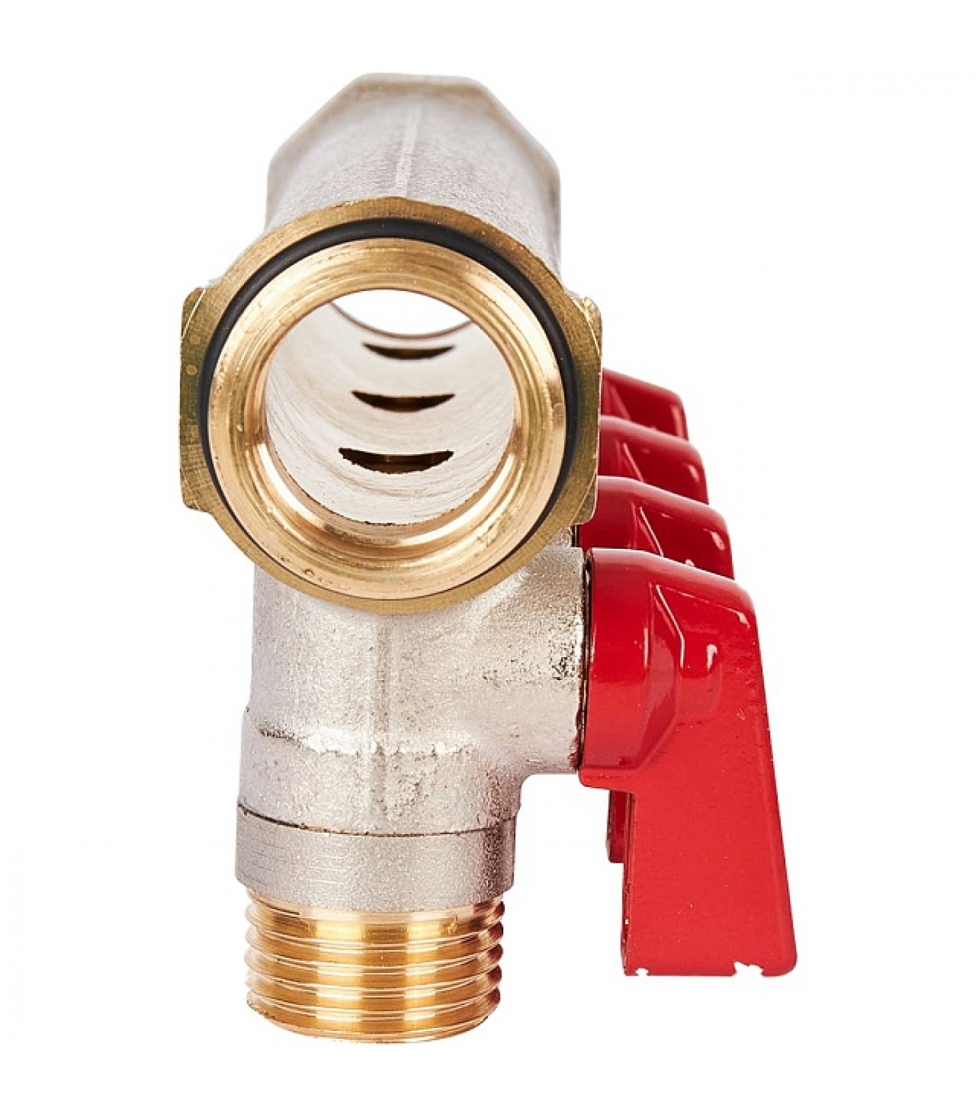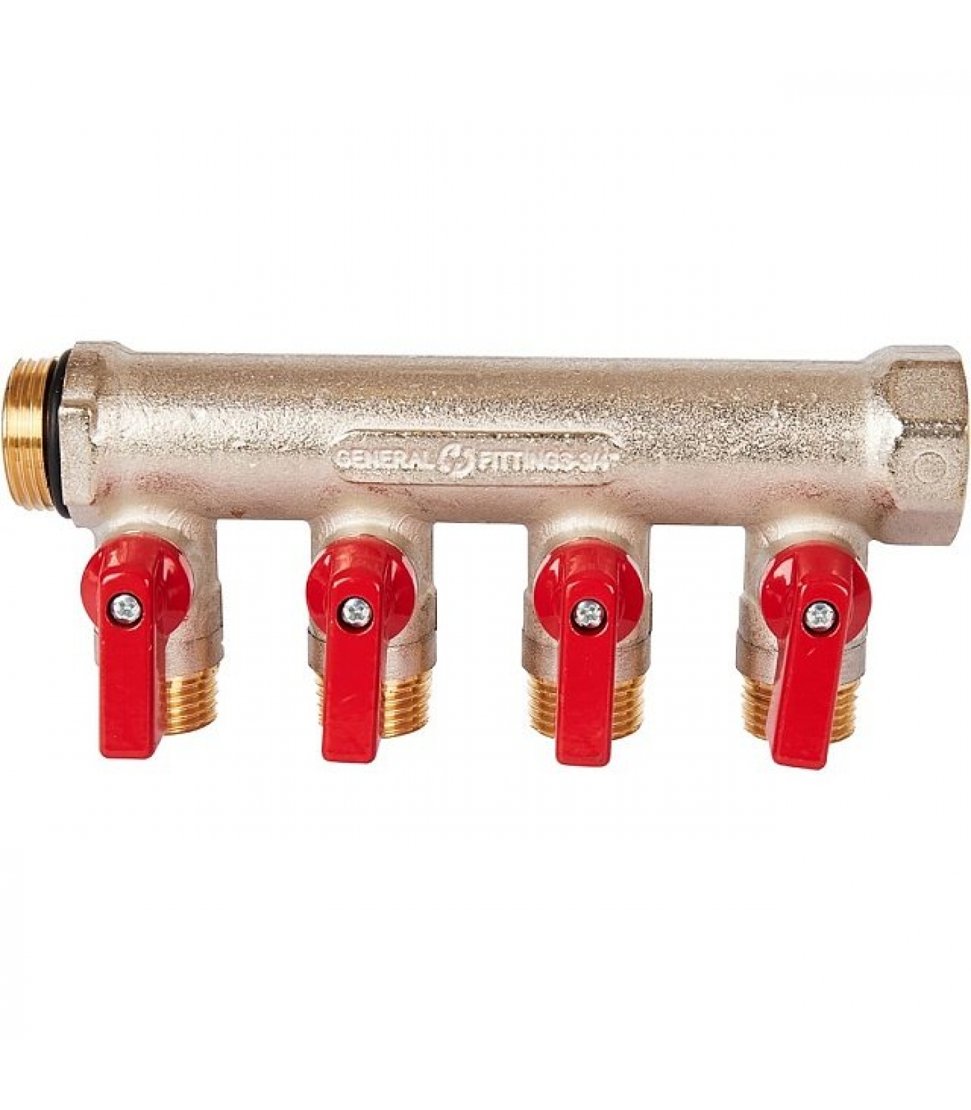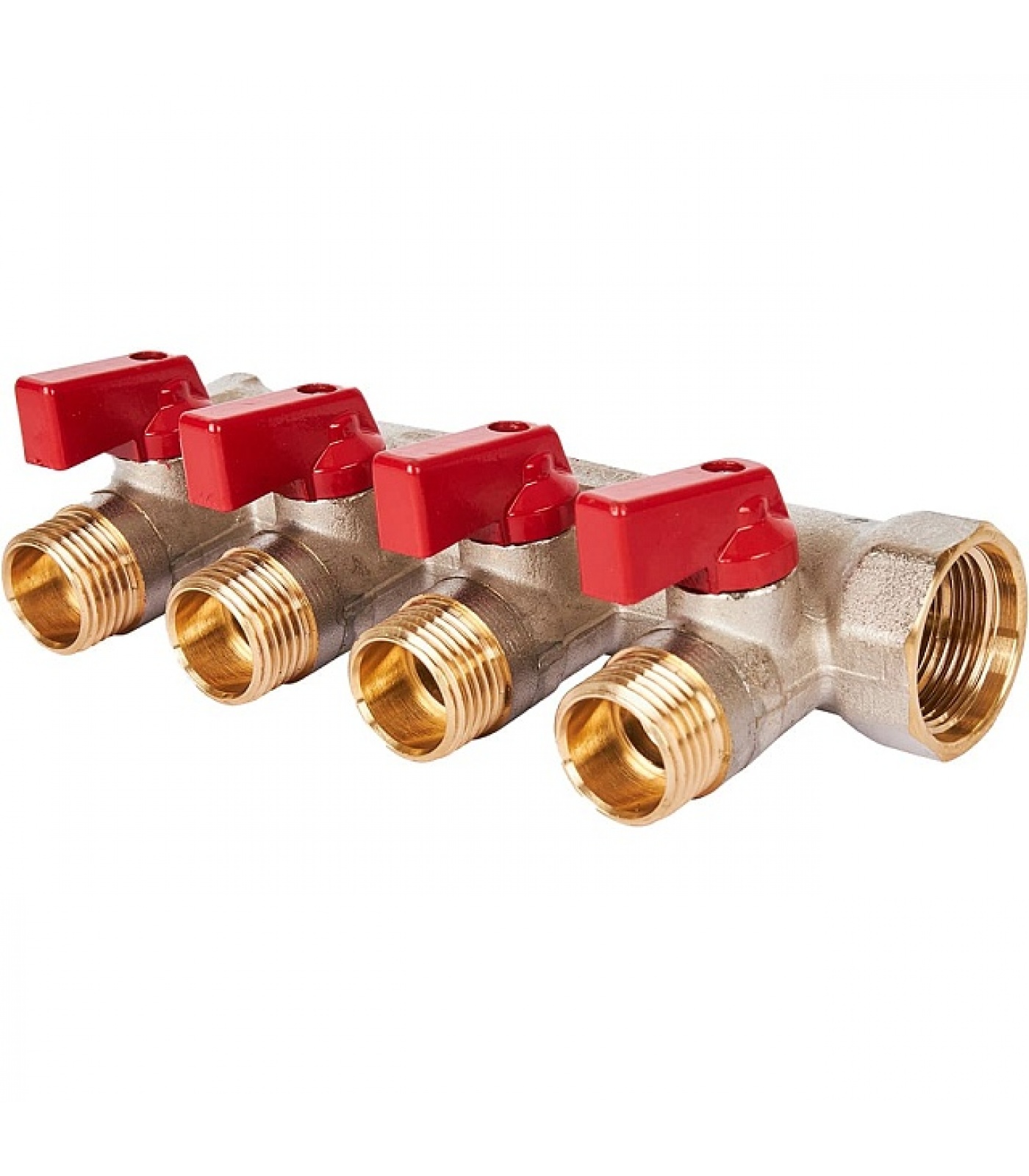 Коллектор с шаровыми кранами STOUT 3/4 , 4 отвода 1/2 (красные ручки)