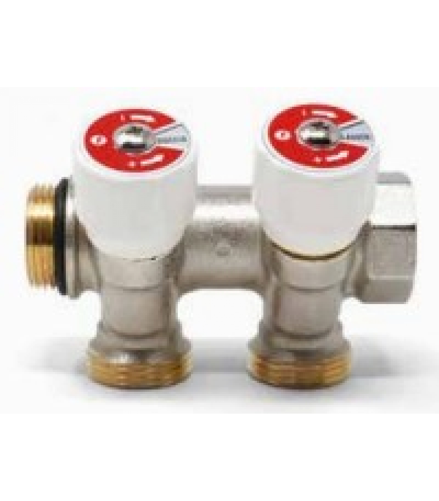 Giacomini R585CS 1 ВР/НР на 2 выхода 3/4 НР евроконус с запорными клапанами