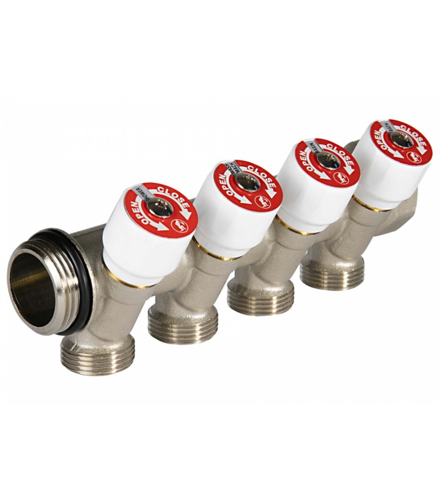 Giacomini R585CS 1 ВР/НР на 4 выхода 3/4 НР евроконус с запорными клапанами