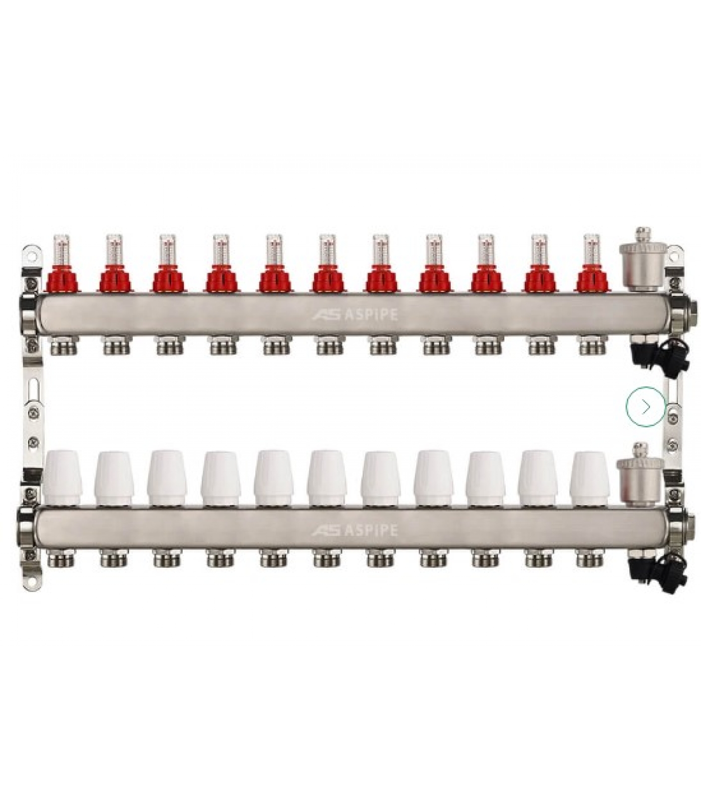 Коллекторная группа 1"х3/4" на 13 выходов Aspipe с расходомерами и воздухоотводчиком, сталь нержавеющая