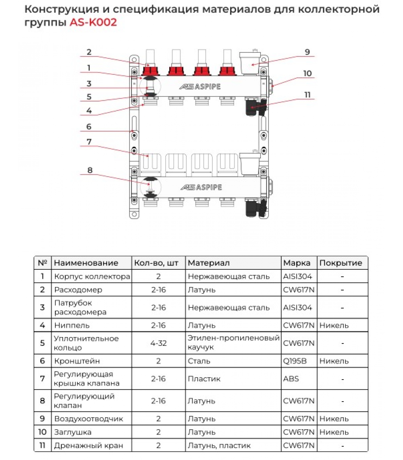 Коллекторные группы Aspipe AS-K001 предназначены для распределения и регулирования потоков теплоносителя в низкотемпературных или высокотемпературных системах отопления.