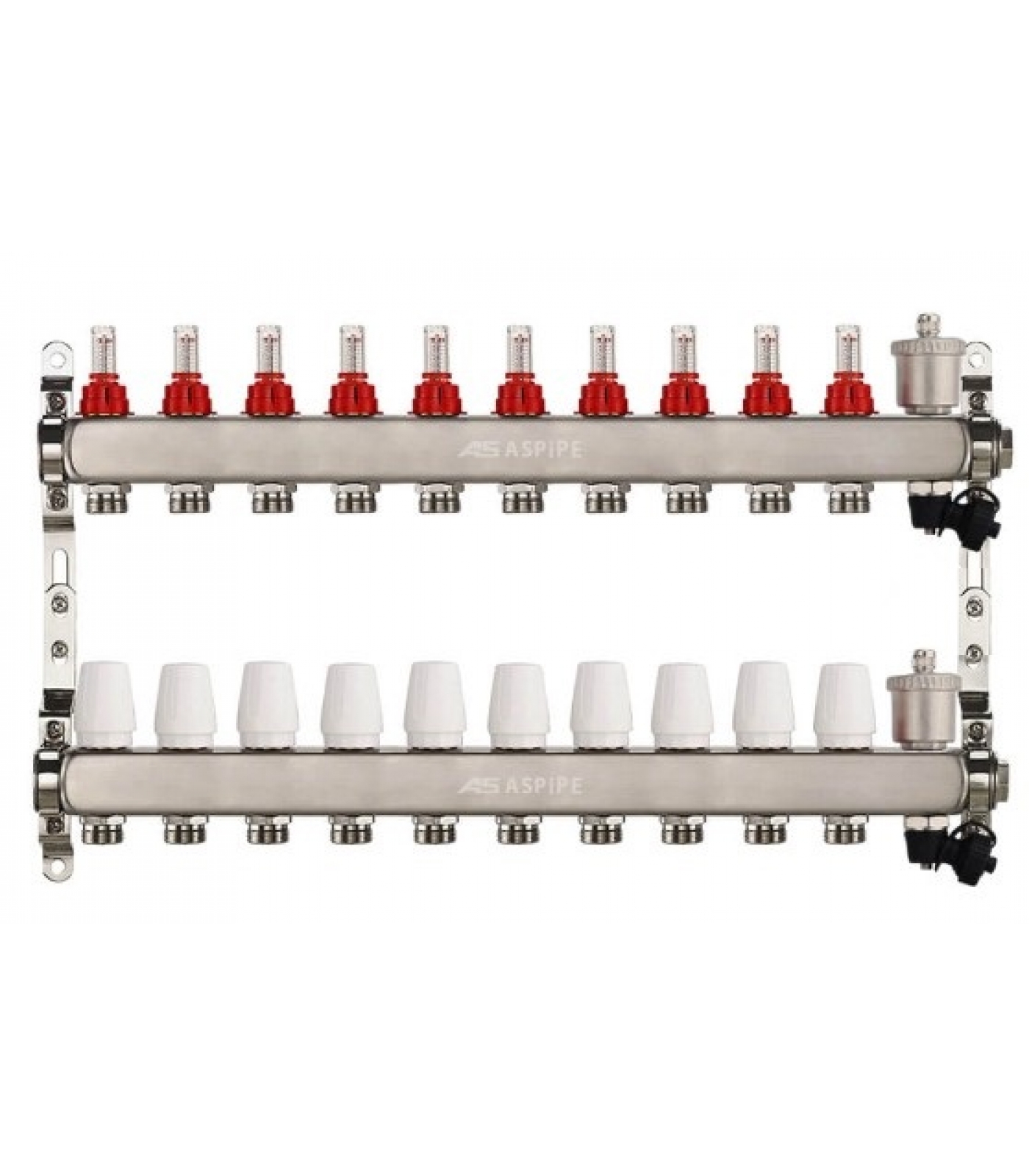 Коллекторная группа на 10 выхода 1"х3/4" Aspipe с расходомерами и воздухоотводчиком, сталь нержавею