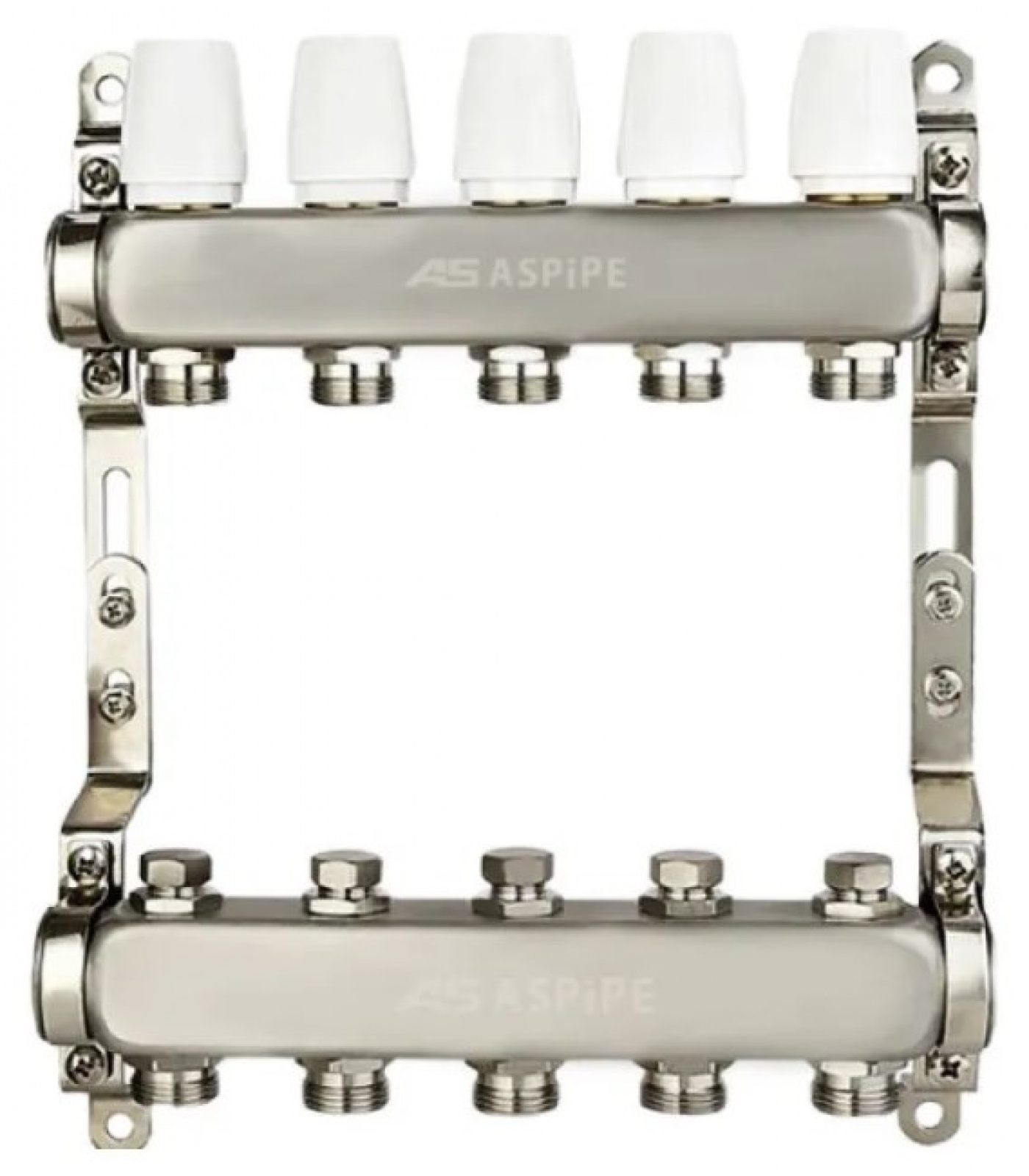Коллекторные группы Aspipe AS-K005 предназначены для распределения и регулирования потоков теплоносителя в низкотемпературных или высокотемпературных системах отопления.