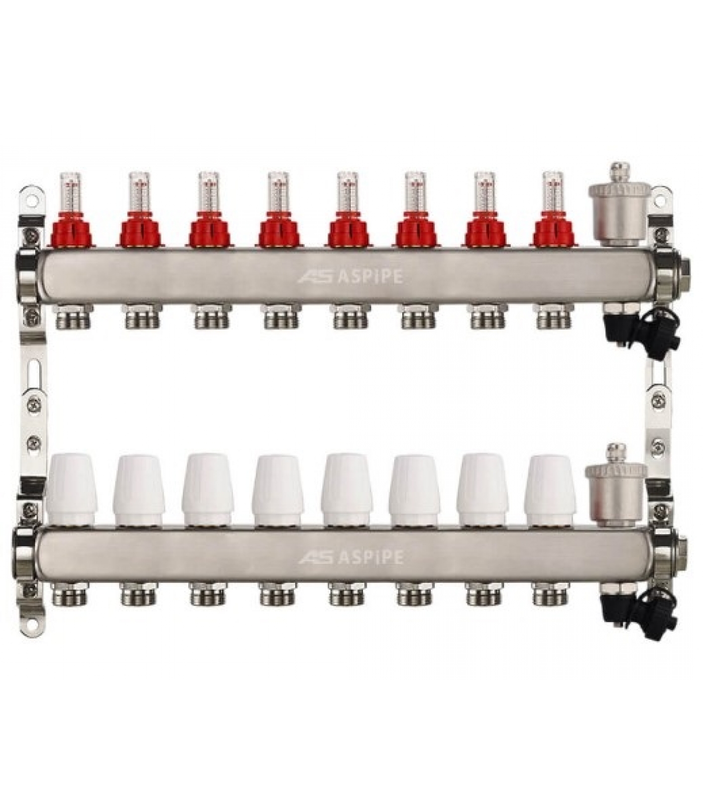 Коллекторная группа на 8 выхода 1"х3/4" Aspipe с расходомерами и воздухоотводчиком, сталь нержавею