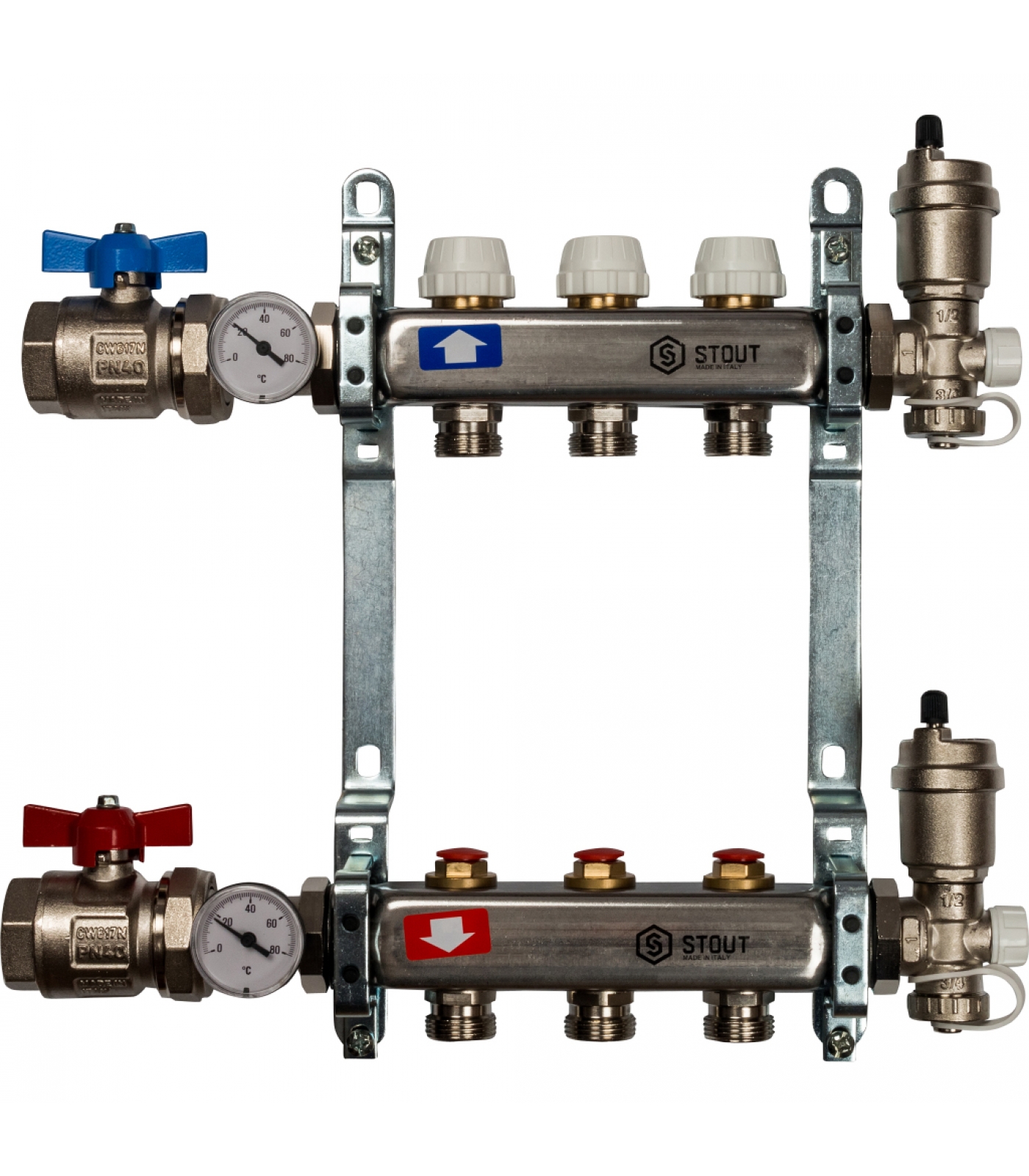 Распределительный коллекторный блок тип SMS STOUT – изделие полной заводской готовности. Все детали собраны на заводе, соединения не нуждаются в дополнительной герметизации