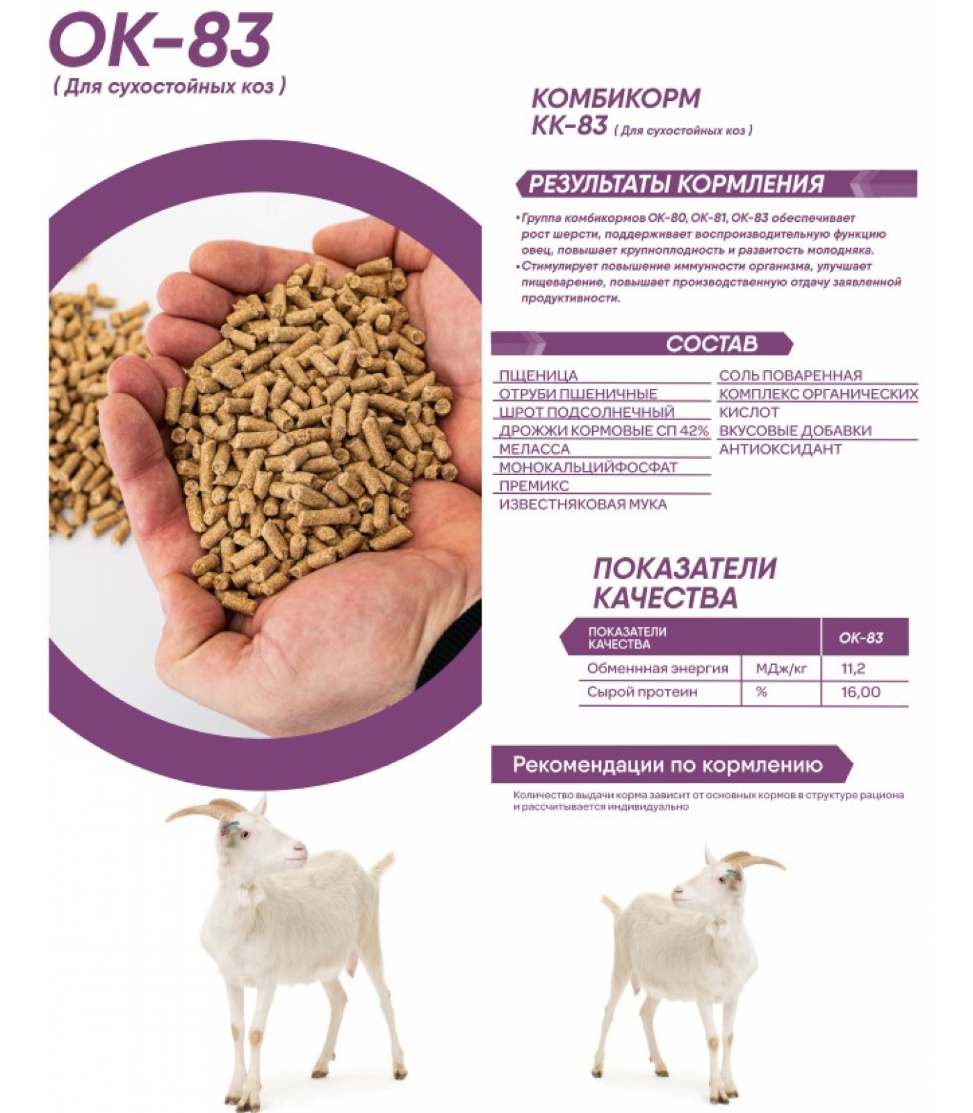 Комбикорм ОККОРМ для сухостойных коз, гранулы, 25 кг