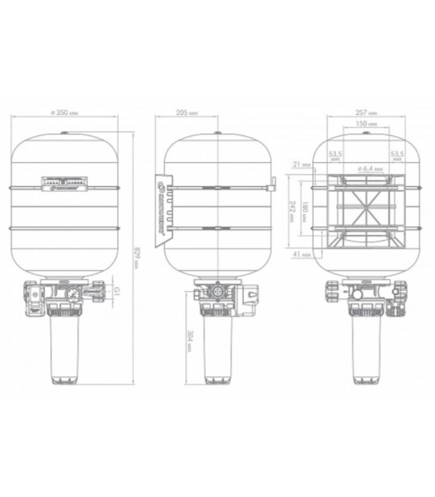- гидроаккумулятор со сменной мембраной (изготовлена из EPDM) и воздушным клапаном (ниппелем);