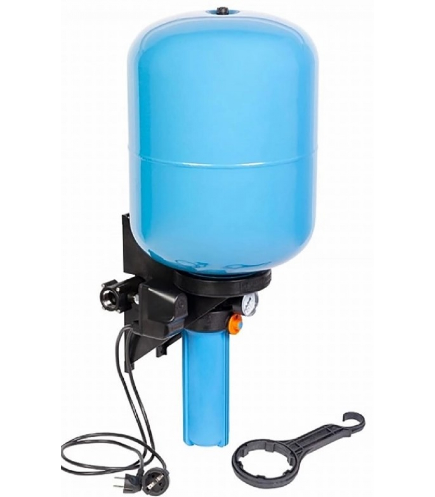 Система содержит все необходимые элементы автоматического управления насосом, не требует настроек, позволяет подключаться в любом удобном месте магистрали вне зависимости от направления потока воды.