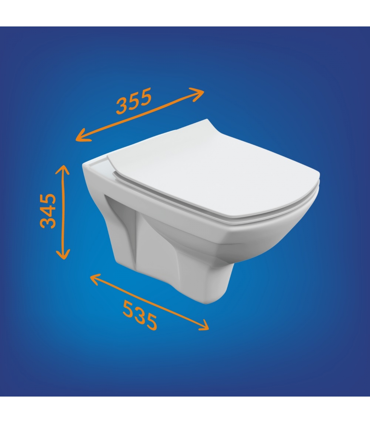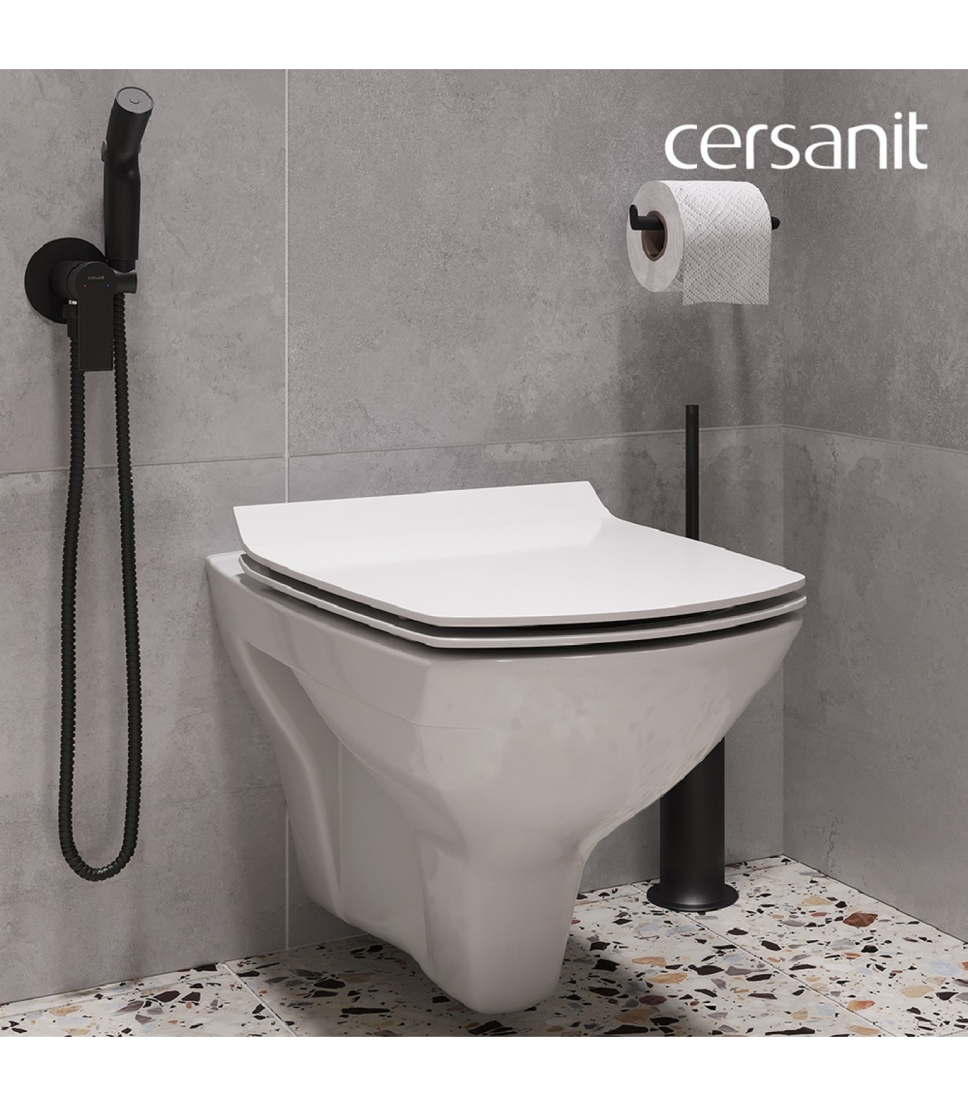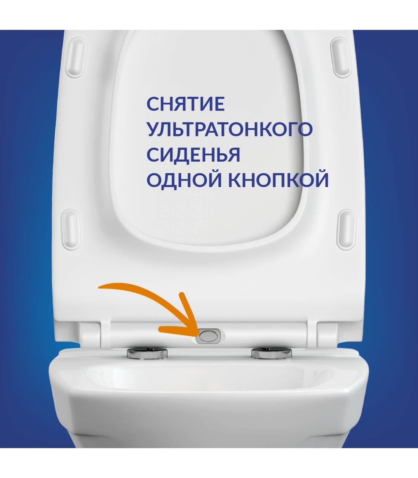 Комплект CARINA XL с ультратонким антибактериальным сиденьем из дюропласта с функцией плавного закрывания и легкосъемом, с инсталяцией Vector и пластиковой кнопкой смыва Corner.