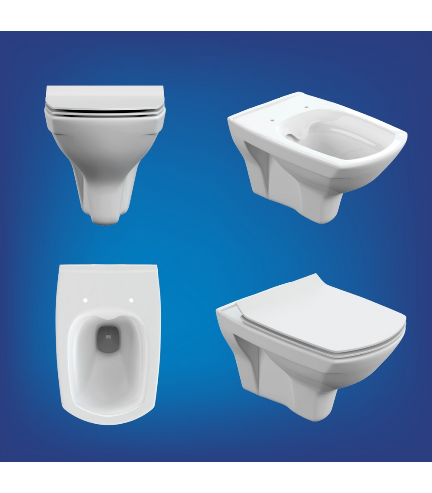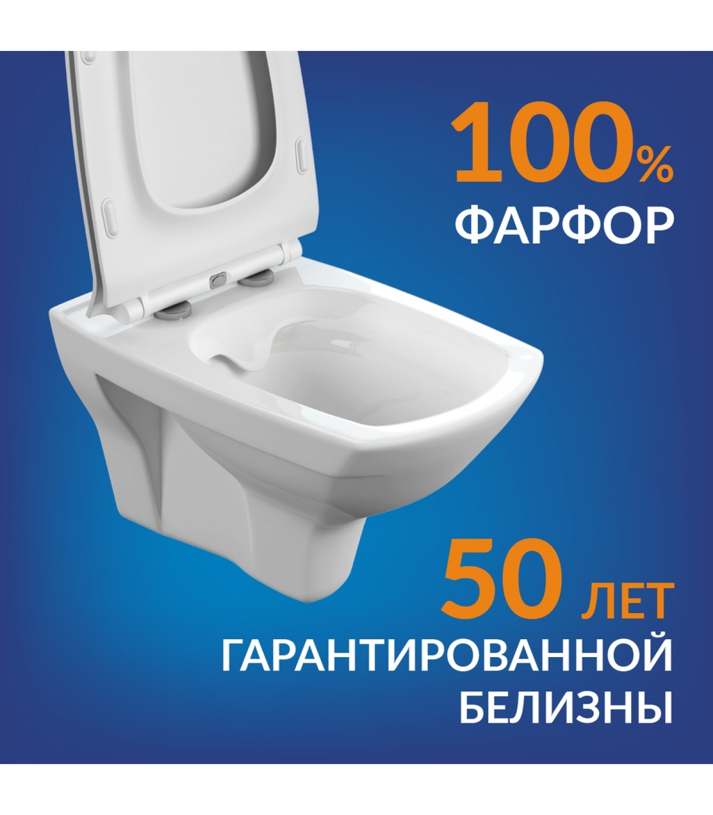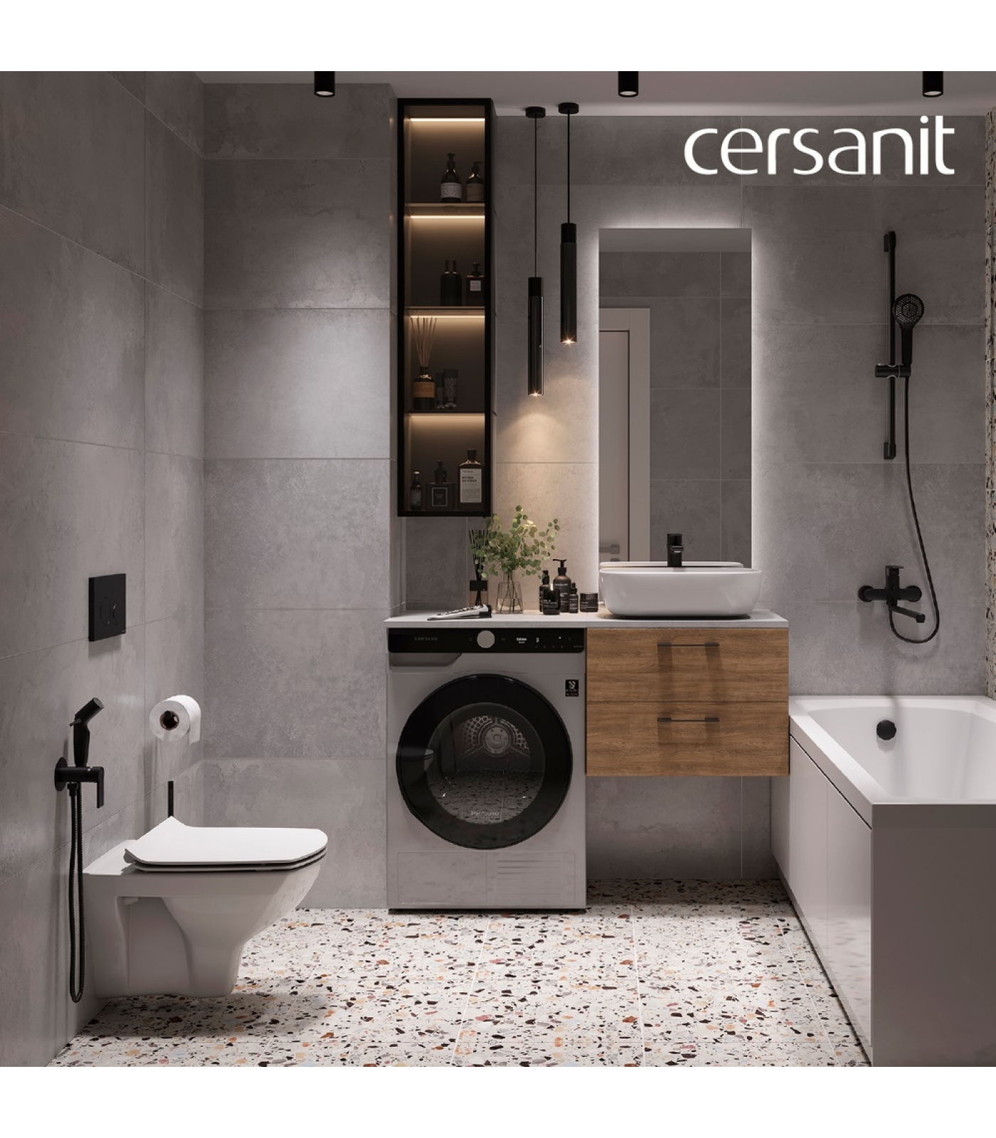 Комплект CARINA XL с ультратонким антибактериальным сиденьем из дюропласта с функцией плавного закрывания и легкосъемом, с инсталяцией Vector и пластиковой кнопкой смыва Corner.