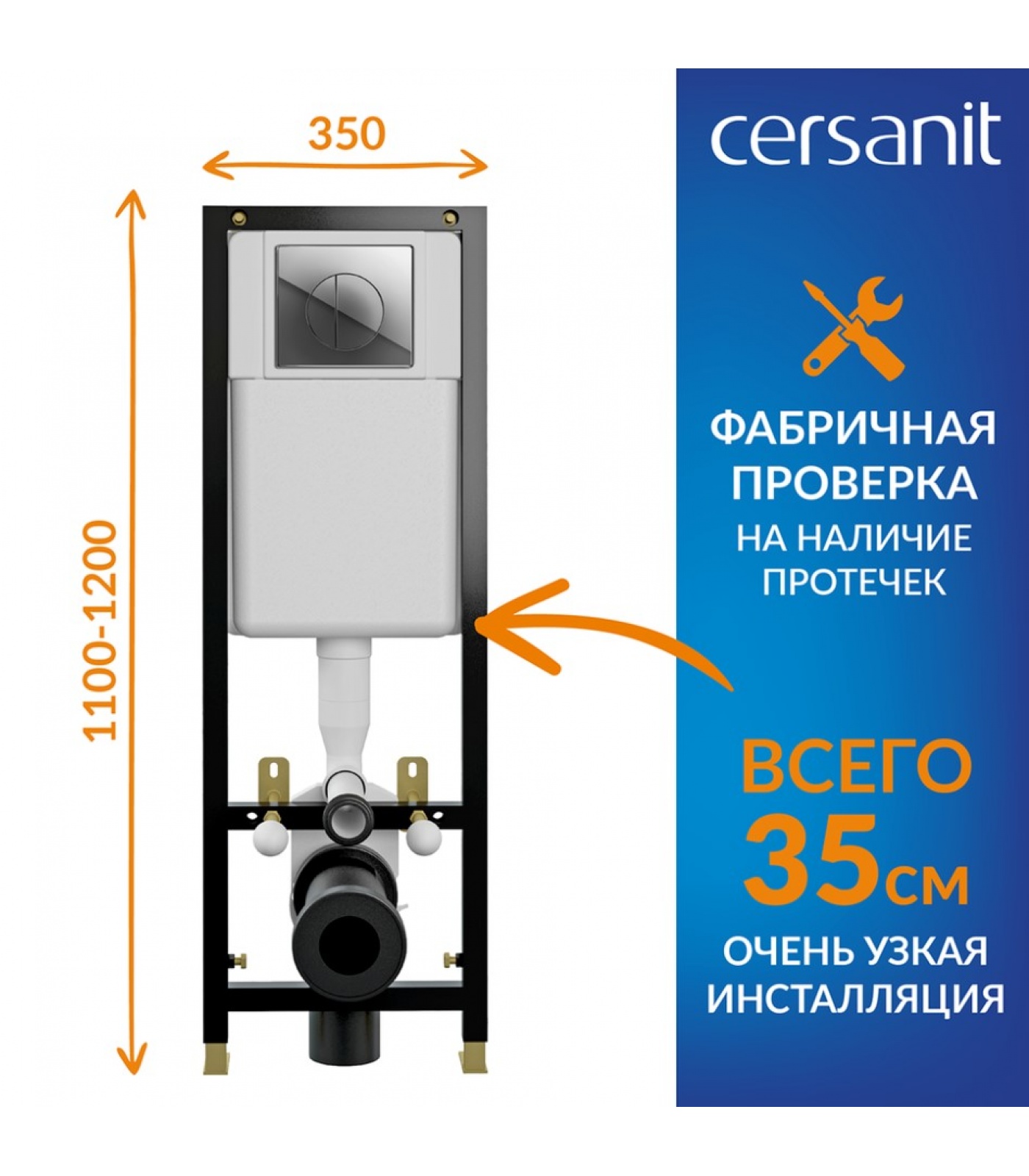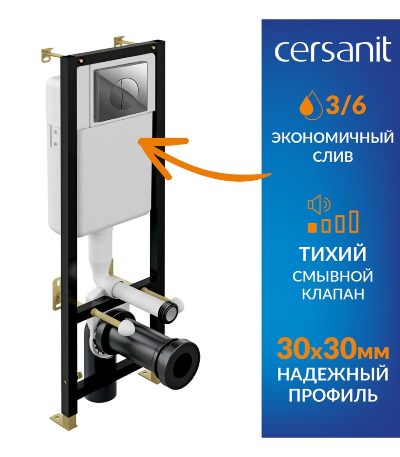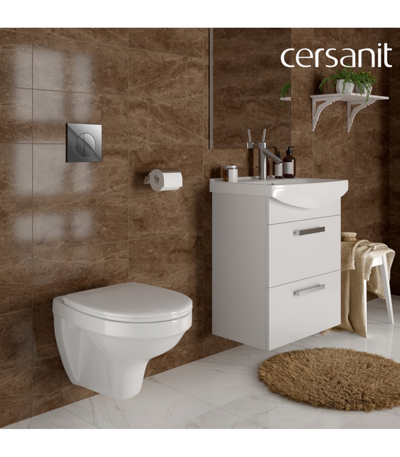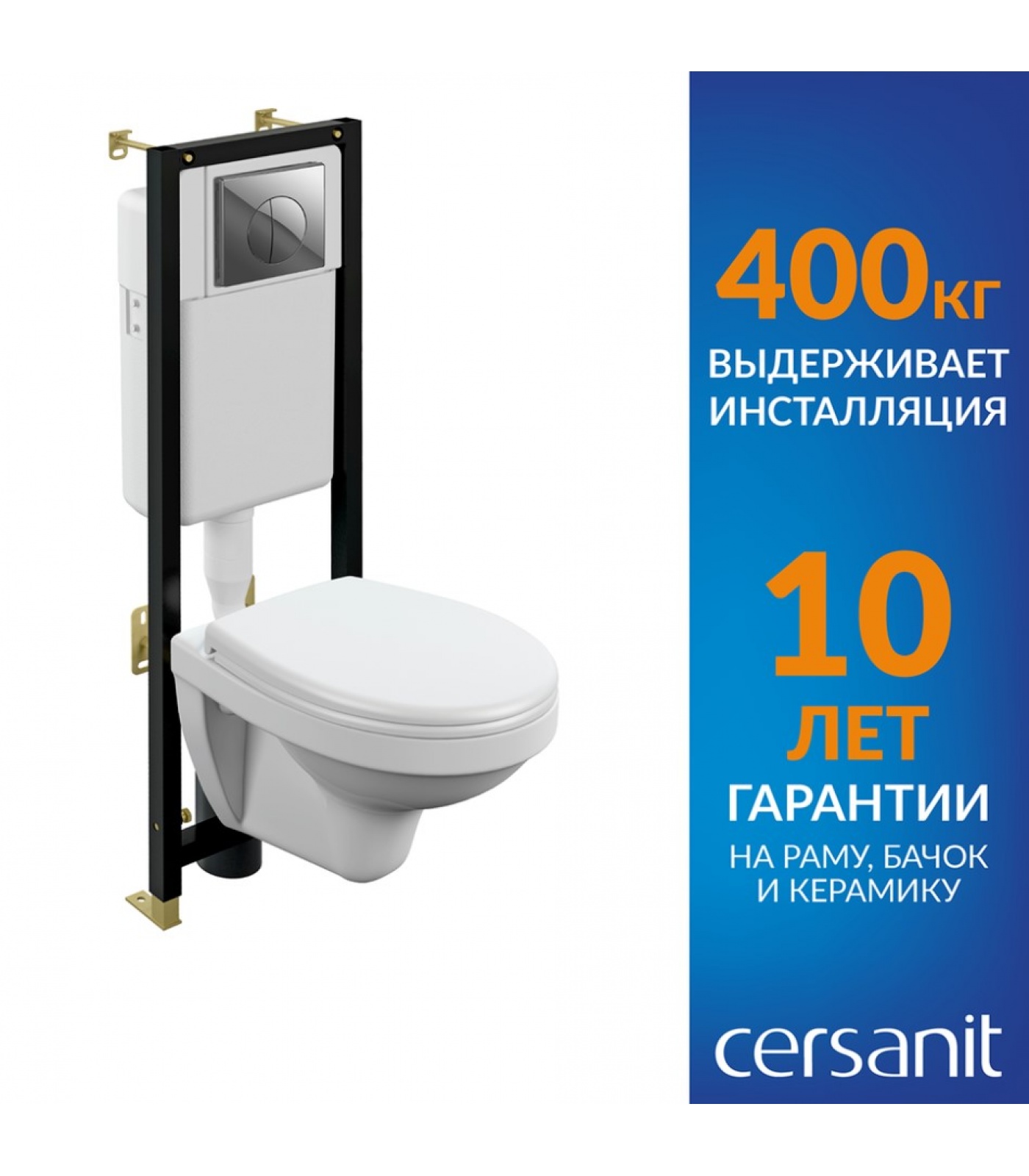 Готовое решение от российского производителя Cersanit для санузла в современном стиле — в комплекте инсталляция для унитаза со встроенным смывным бачком, подвесной унитаз, сиденье с микролифтом, смывная клавиша. Комплект полностью готов для монтажа и облицовки.
