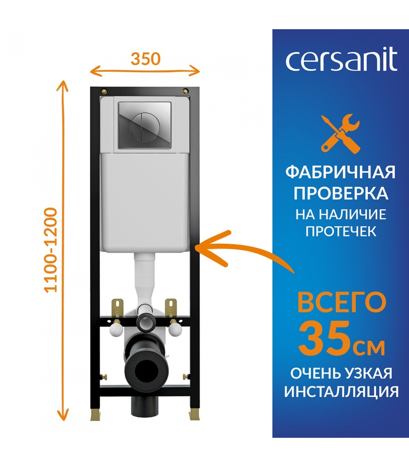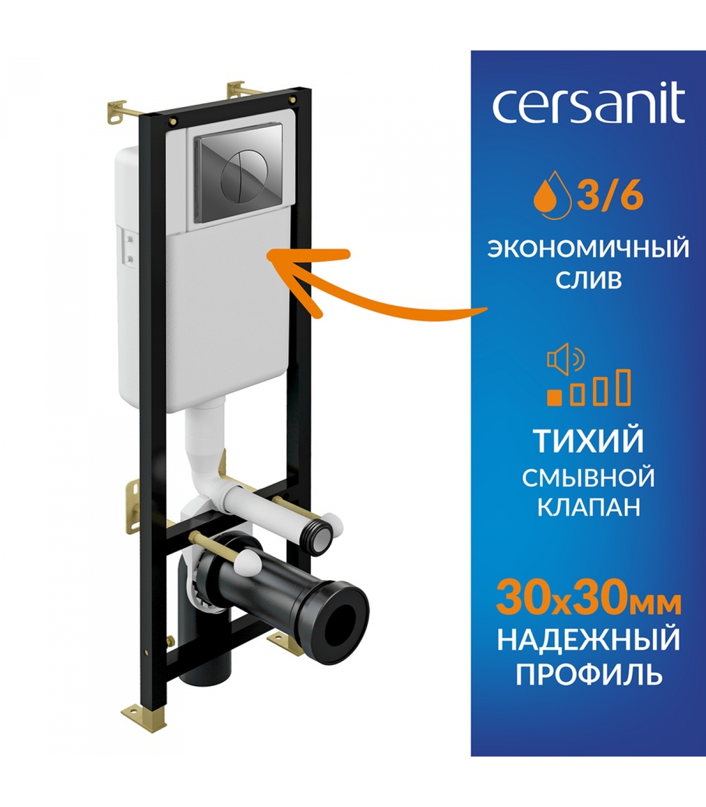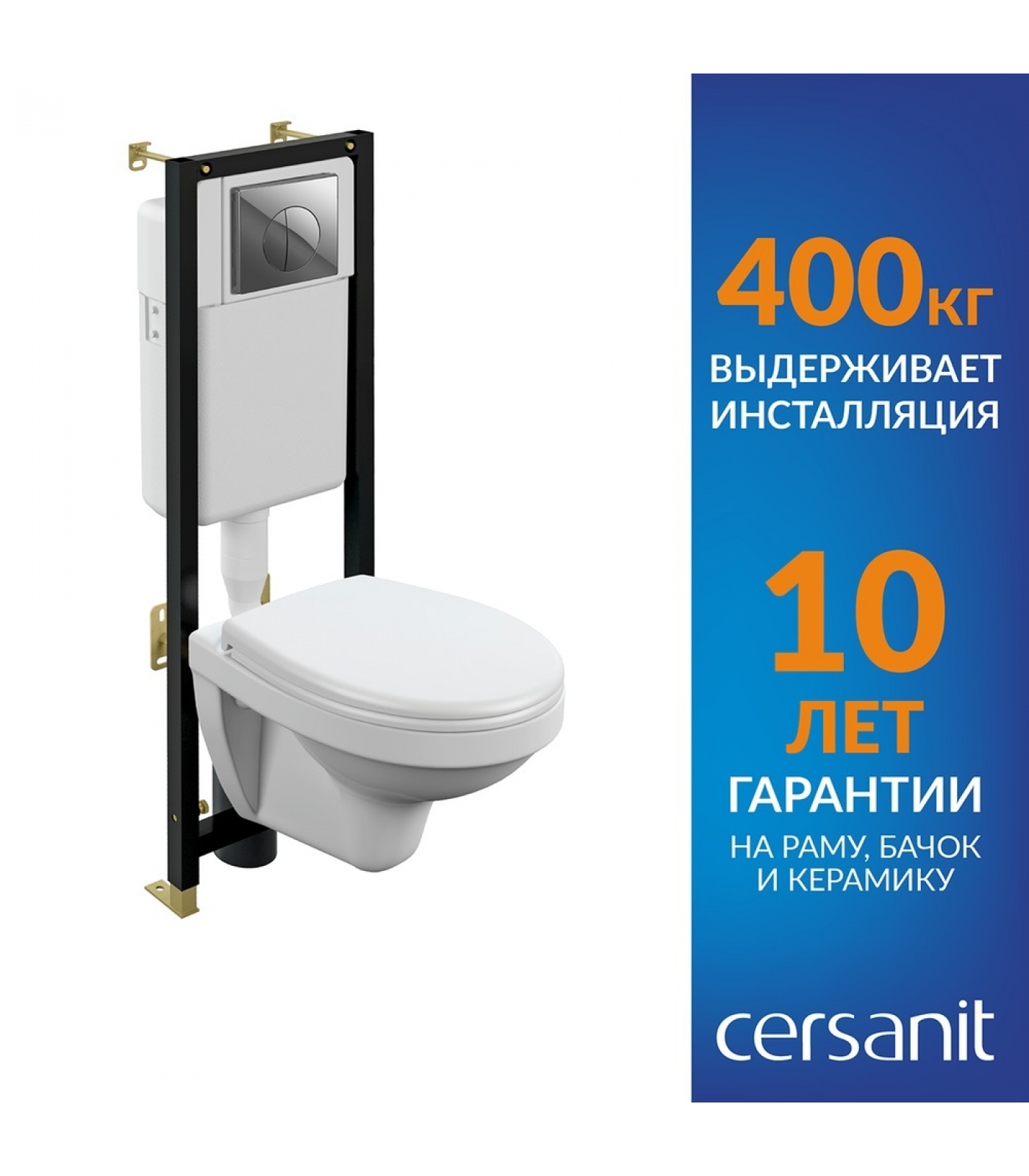 Надежность и прочность конструкции - несмотря на то, что рама состоит из двух частей, инсталляция не проигрывает в своих свойствах монолитным аналогам. Регулировка по высоте.