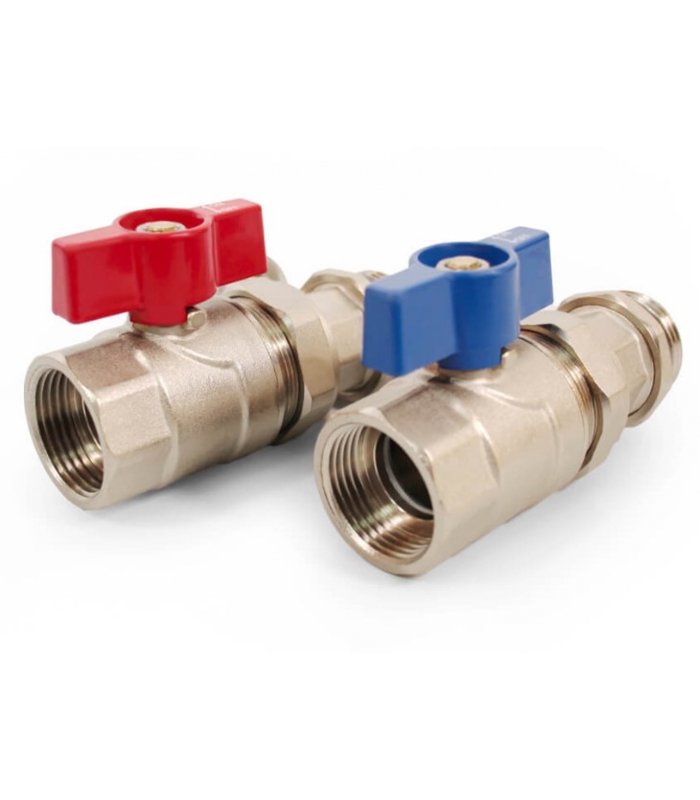Поставляются в комплекте (2 штуки) с красными и синими ручками-бабочками, что позволяет легко различать горячий и холодный поток (подающую и обратную линию).