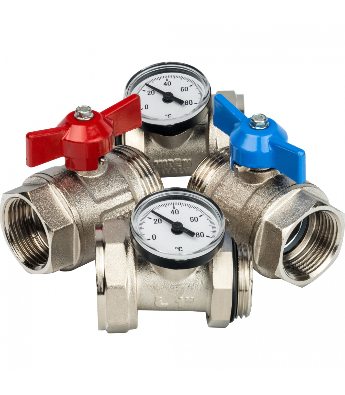 Комплект для коллектора STOUT 1” прямые шаровые краны с термометрами
