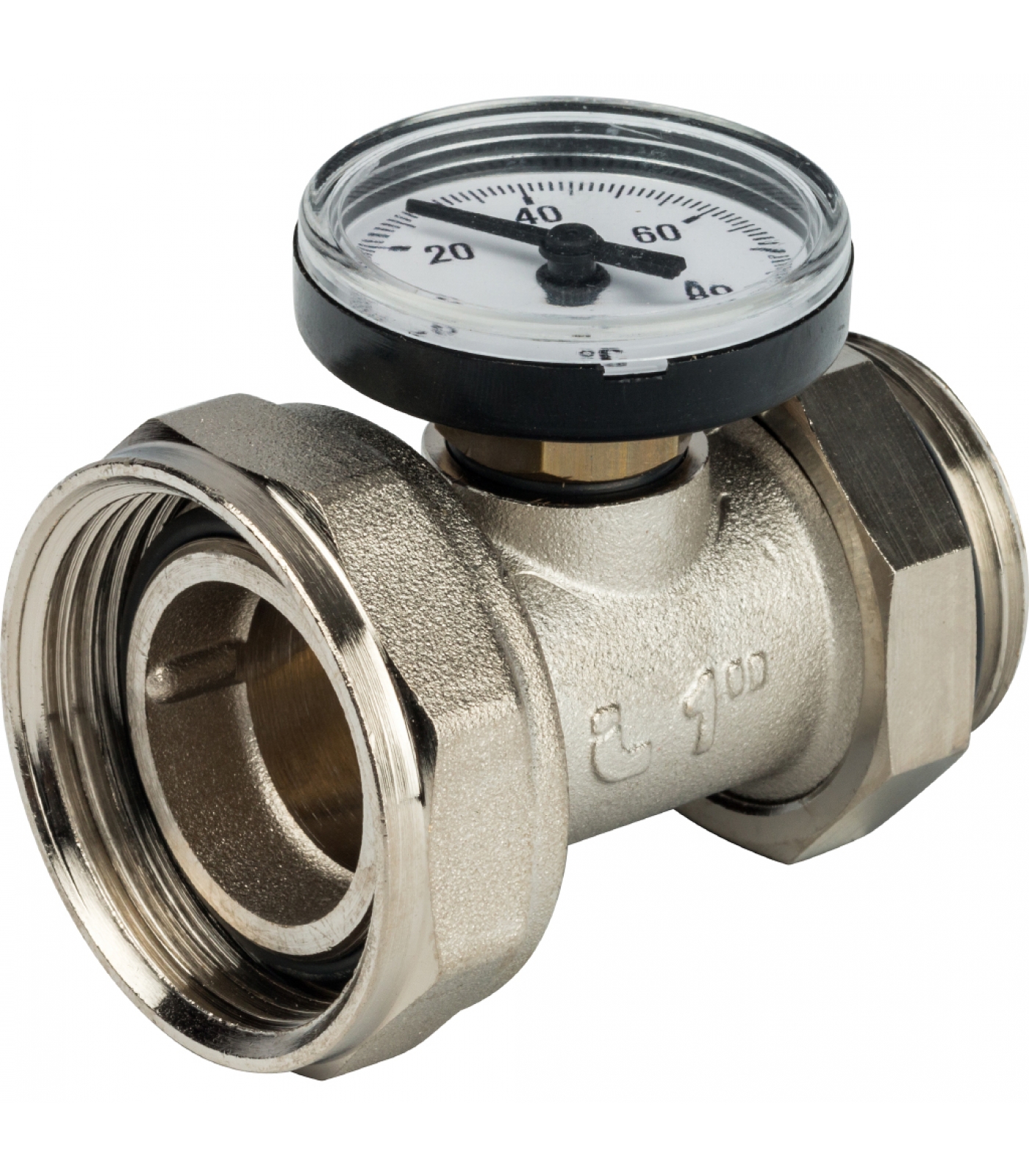 STOUT Комплект прямых шаровых кранов с термометрами 1”