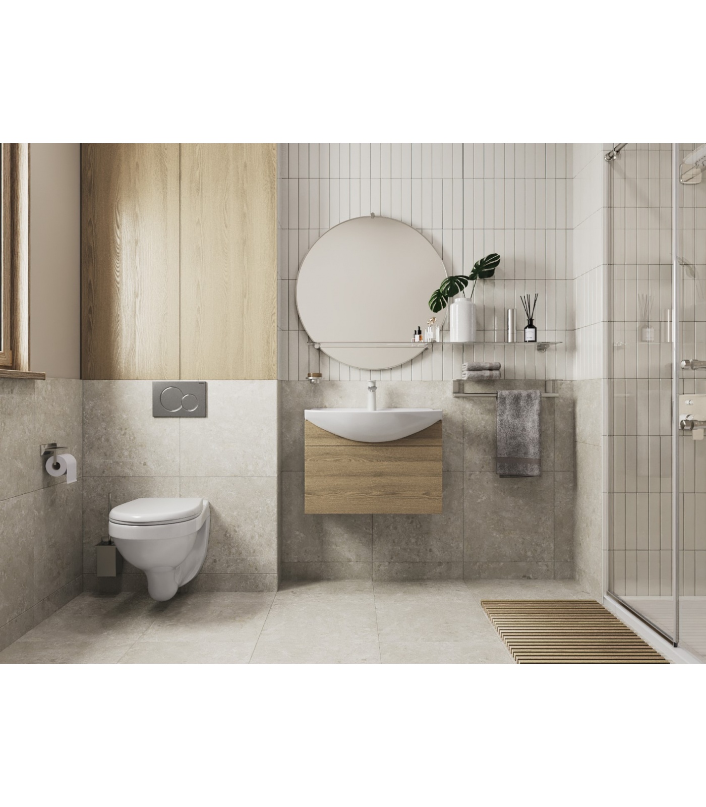 - Легкость в уходе. Подвесная конструкция упрощает уборку под унитазом, а гладкие поверхности легко очищаются от загрязнений.