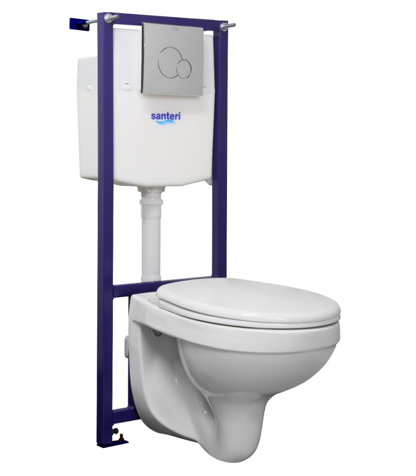 Комплект инсталляции Santeri ПЭК Альфа подвесной унитаз, сиденье, панель хром глянец