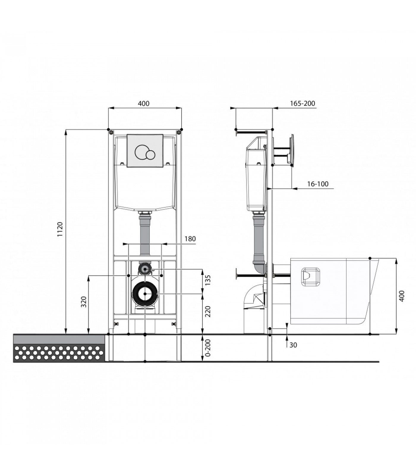 Инсталляция выдерживает нагрузку до 400кг, снабжена выдвижными фиксируемыми ножками, они дают возможность регулировать высоту установки. Двойной смыв обеспечивает значительную экономию воды. На панели размещены две хромированные глянцевые круглые кнопки для большого и малого смыва.