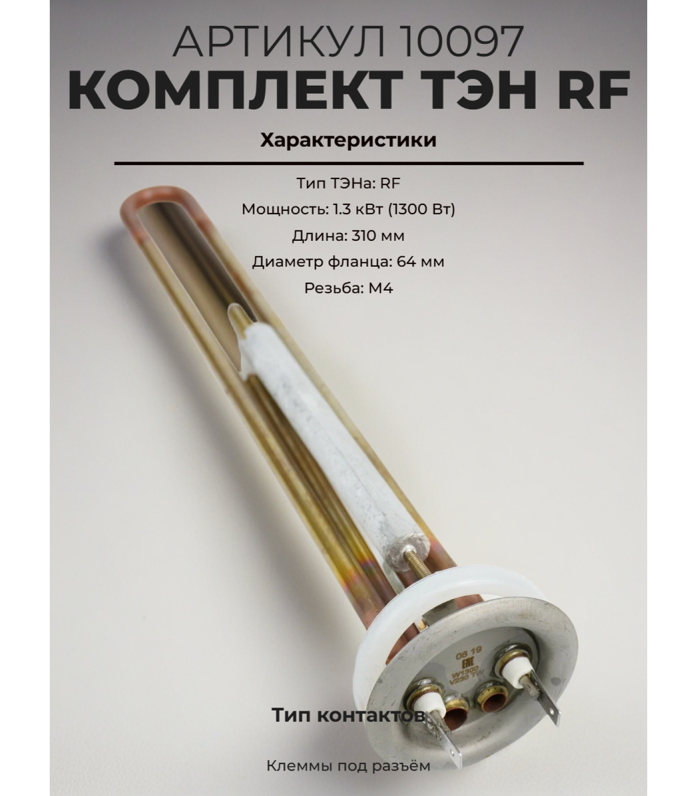 Комплект ТЭН RF 1.3 кВт, М4, L310мм + анод М4 + прокладка для водонагревателя Garanterm