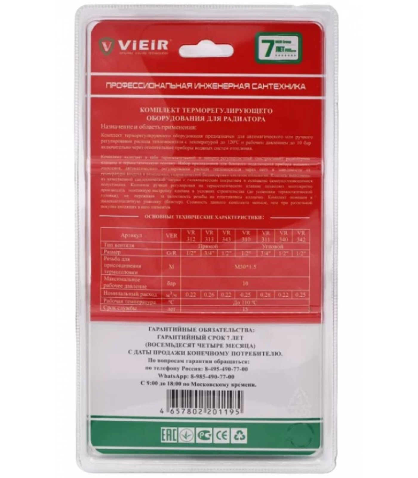 Комплект включает в себя термостатический и запорно-регулировочный (настроечный) радиаторные клапаны и термостатическую головку. Набор предназначен для бокового подключения прибора водяного отопления, автоматического регулирования расхода теплоносителя через него в зависимости от температуры воздуха в помещении, гидравлической балансировки системы отопления. Клапаны выполнены из качественной сантехнической латуни с гальваническим покрытием и оснащены самоуплотняющимися полусгонами. Колпачок ручной регулировки на термостатическом клапане позволяет многократно производить монтажную настройку клапана в условиях строительства (до установки термостатической головки), не переживая за целостность резьбы на пластиковом колпачке.
