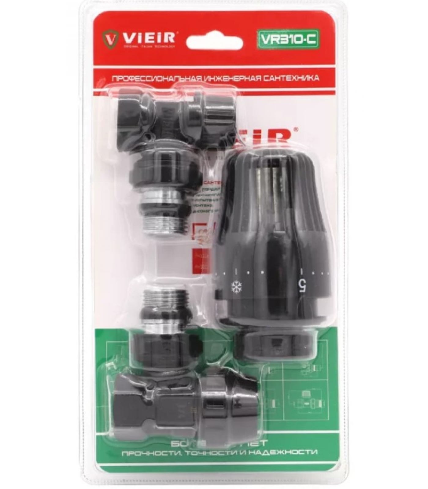 Комплект терморегулирующий угловой 1/2" Vieir черный