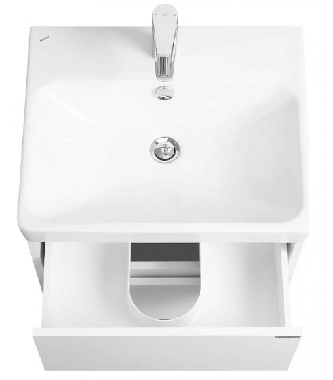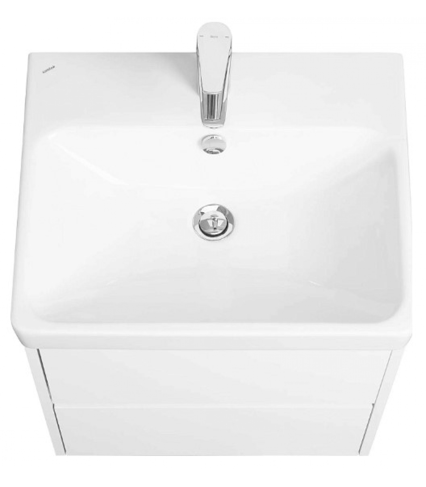 Тумбу идеально дополняет белоснежная раковина Адриана от бренда Santek. Лаконичный бортик раковины может быть использовать для аксессуаров.