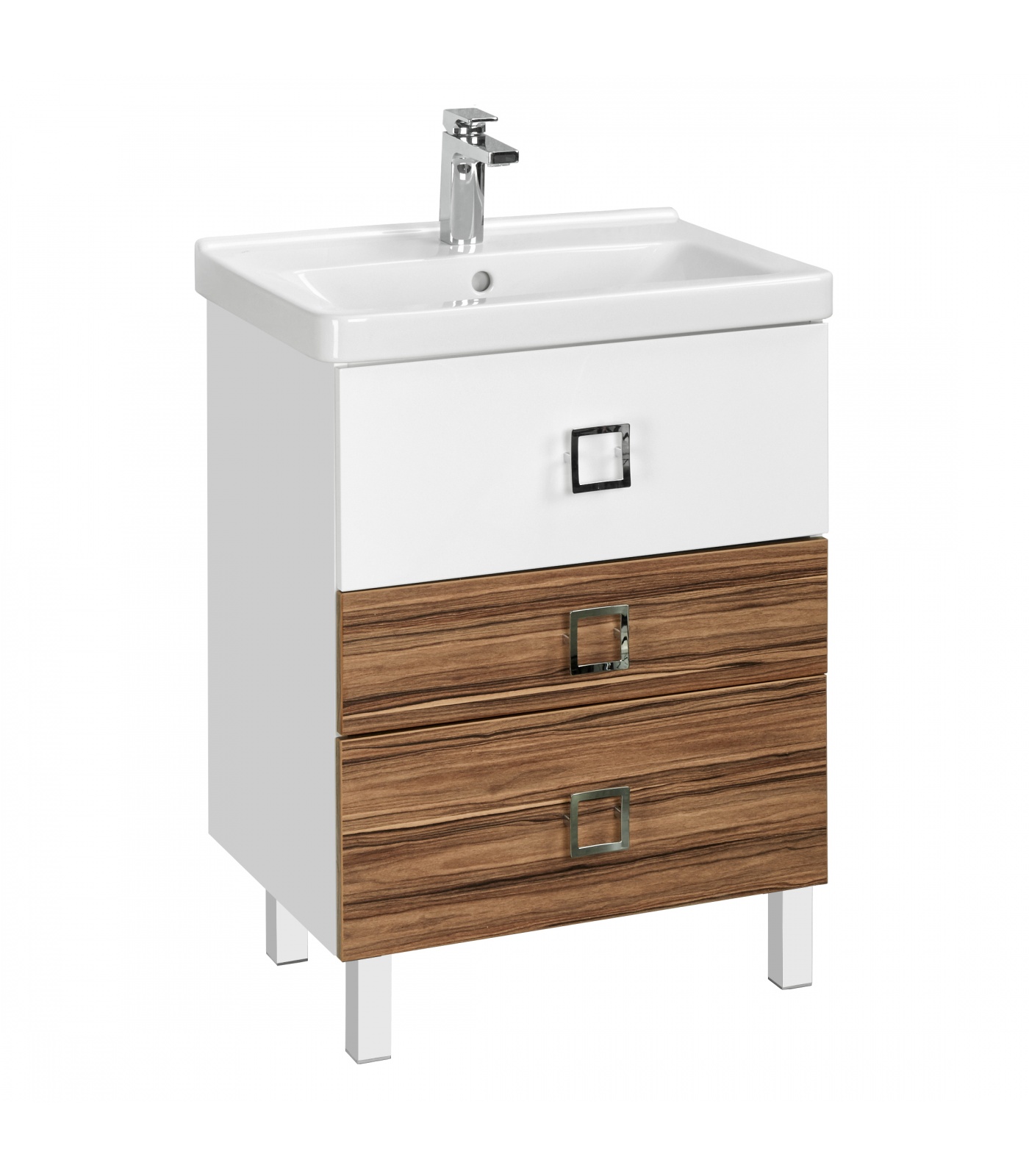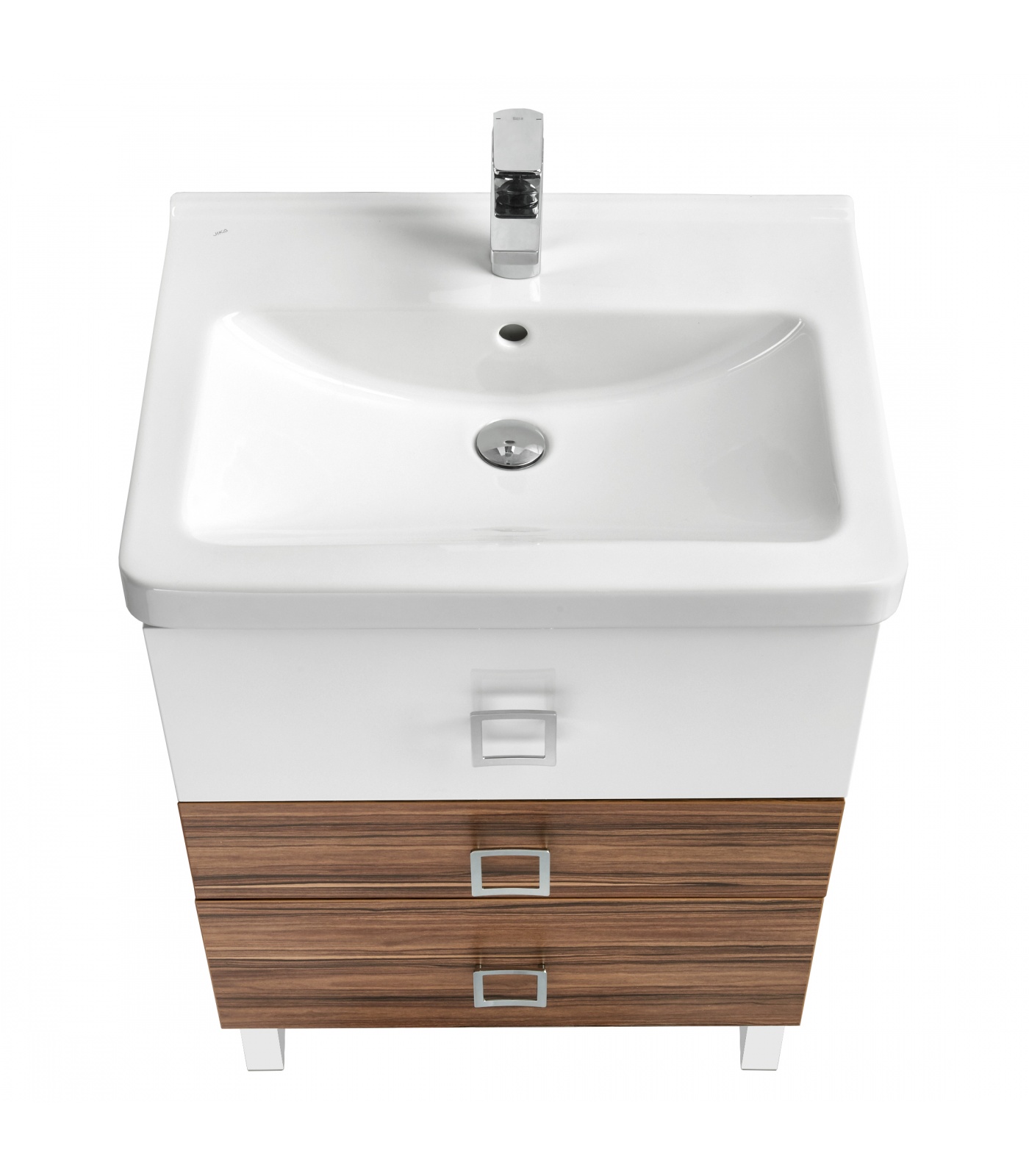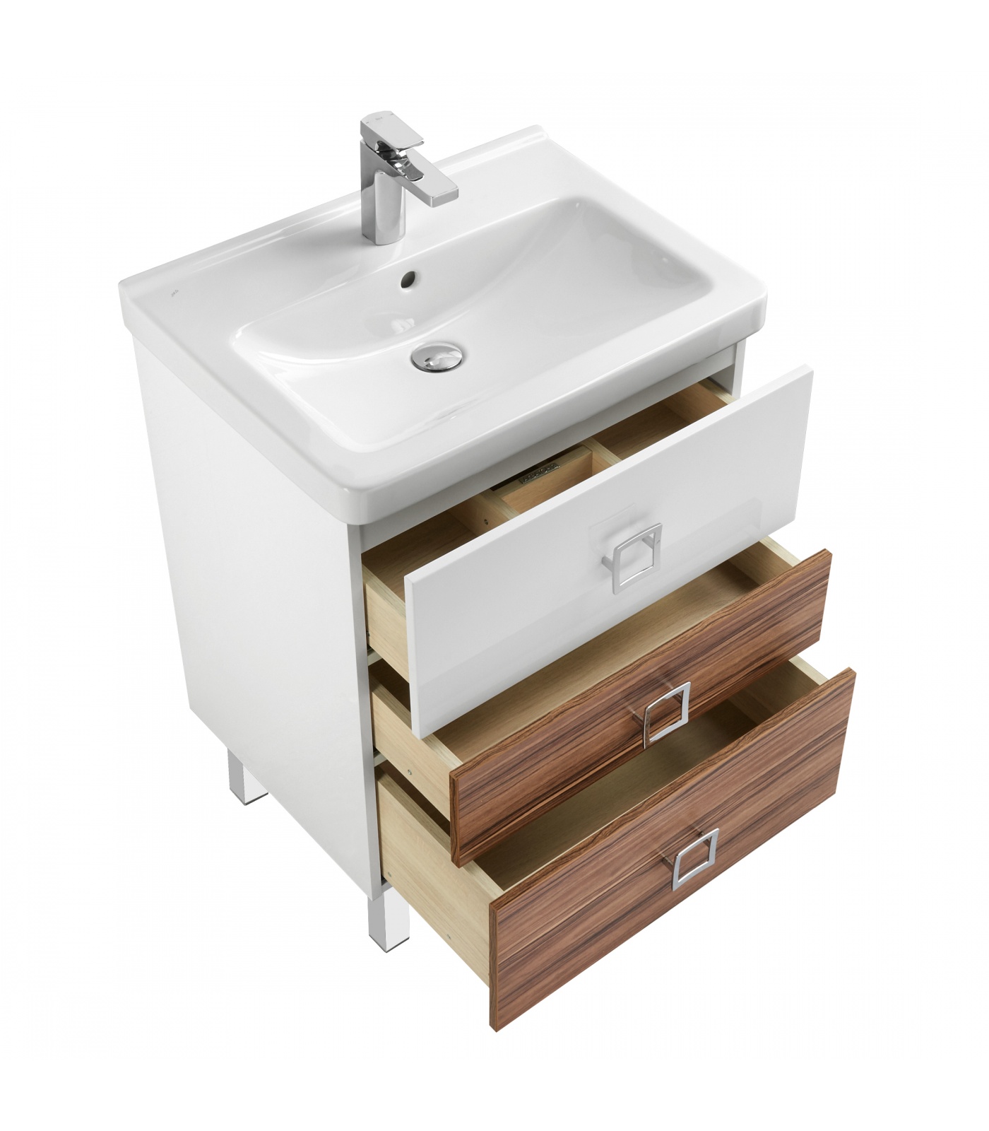 Тумба Стамбул 65 М от AQUATON сочетает в себе два главных требования к мебели для ванных комнат - функциональность и стильный дизайн. Комбинация лаконичного белого фасада с отделкой под натуральное дерево в цвете эбони темный смотрится эффектно и оригинально. Модель имеет два глубоких выдвижных ящика с доводчиком и один узкий в центре, что позволит грамотно разместить все предметы гигиены. Корпус и фасады из влагостойкой ЛДСП - оптимальное решение для пространств с повышенной влажностью. Строгие формы тумбы выгодно подчеркивает лицевая фурнитура и предлагаемая для комплектации раковина Cubito чешского производителя JIKA.