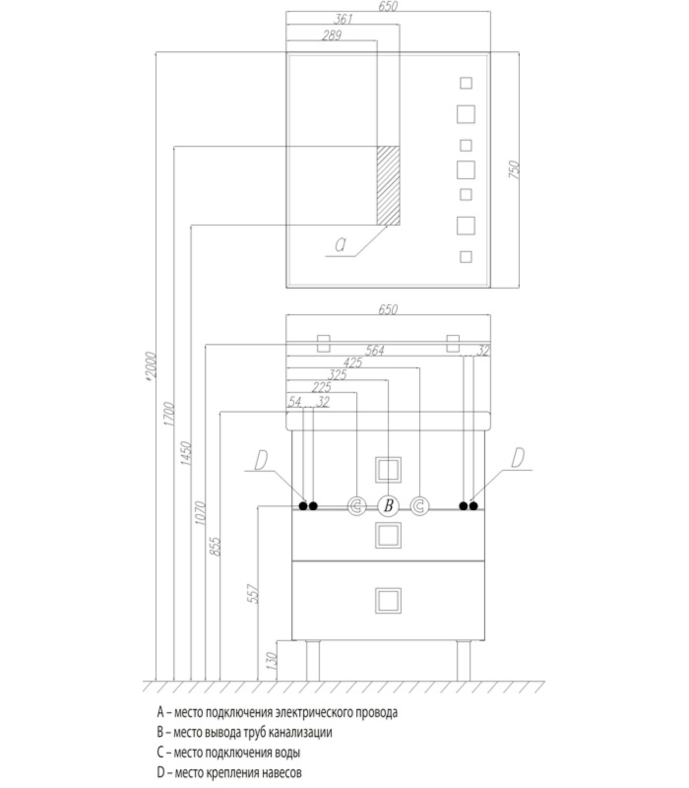 Внимание! Смеситель, пенал и зеркало в комплект поставки не входят.