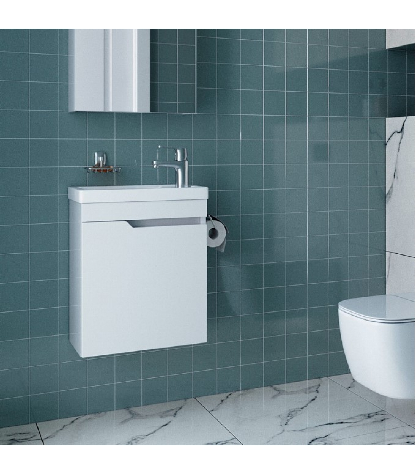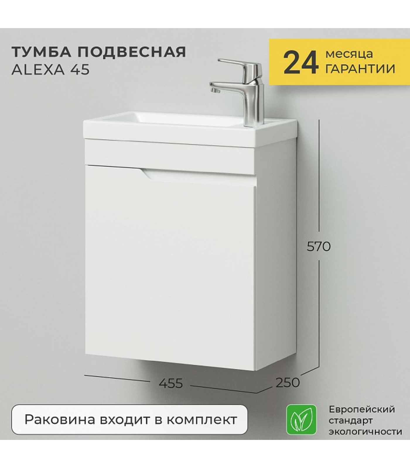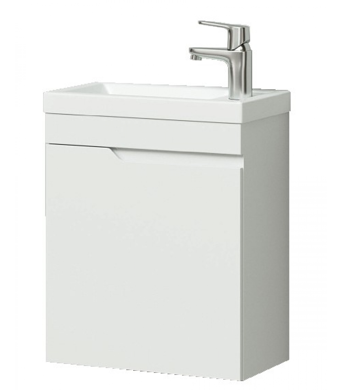 Тумба с раковиной подвесная Итана Alexa 45 с распашной дверцей левая узкая Белый глянец