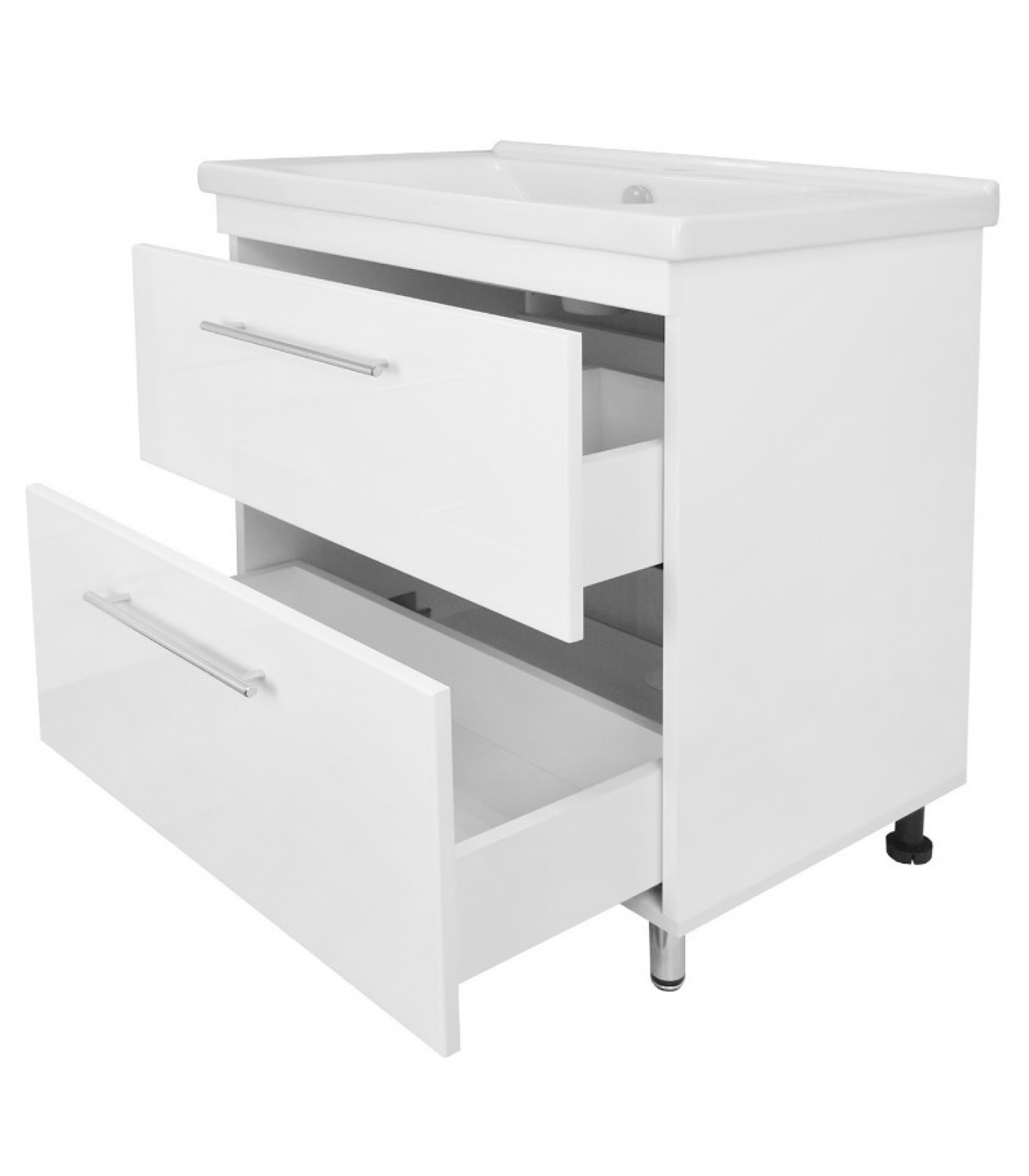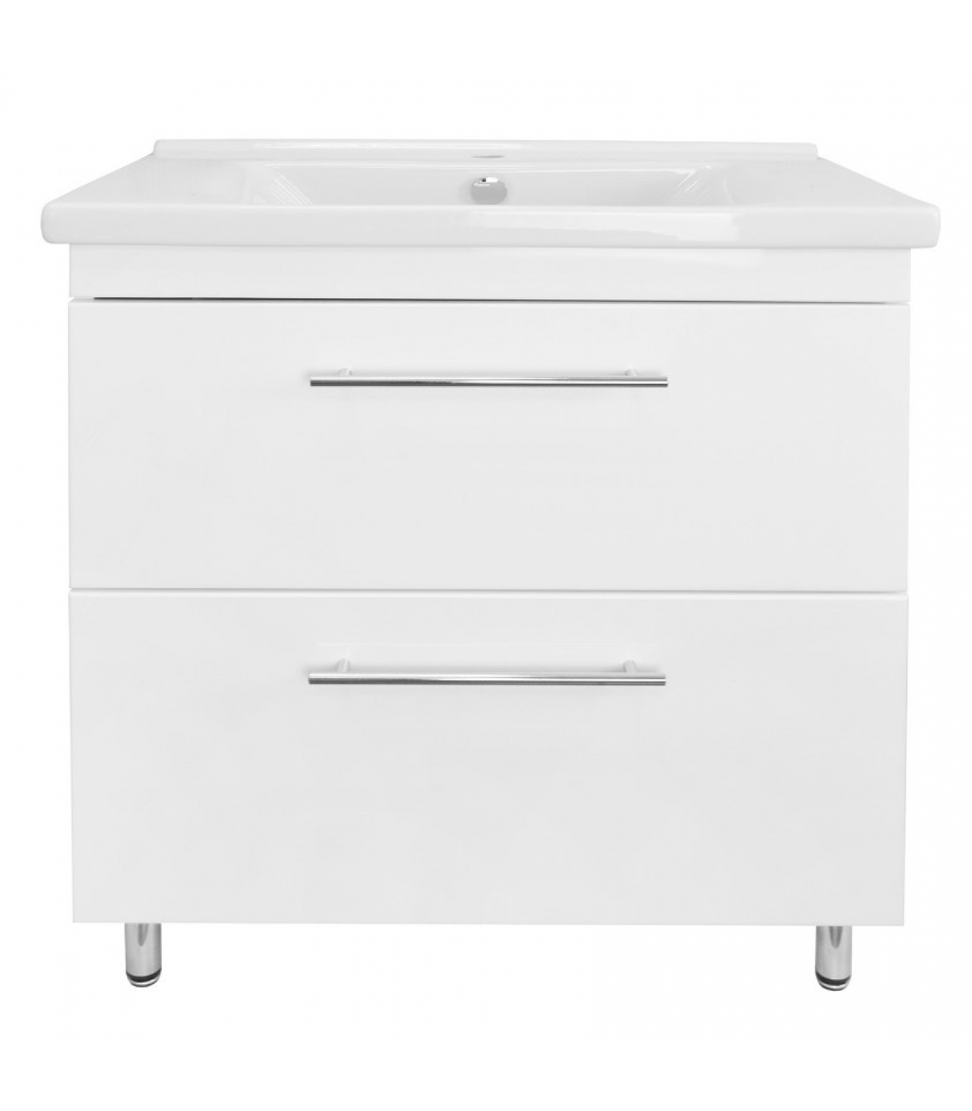 Комплект Тумба Loranto Karina 80/2Н напольная с раковиной Миранда 80, белый глянц